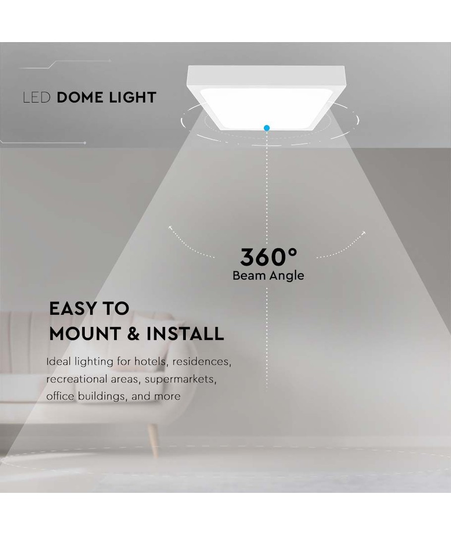 Upptäck en lampa med 18W effekt som inte bara ger energi till ditt rum utan även skapar en unik atmosfär med sitt kallvita ljus på 6500K. Den fyrkantiga kupolformen med vit ram erbjuder en stilren och modern touch till alla interiörer.