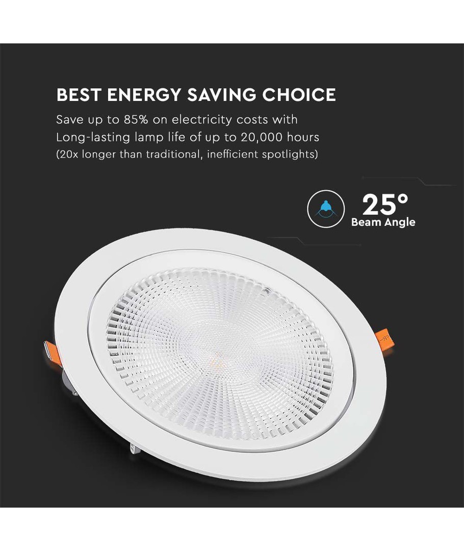 Denna downlight är försedd med Samsung LED-chip och erbjuder en imponerande livslängd på upp till 30 000 timmar. Tack vare den professionella konstruktionen och robusta kylningskapaciteten kan du förvänta dig minimalt fall i ljusstyrka över tid.