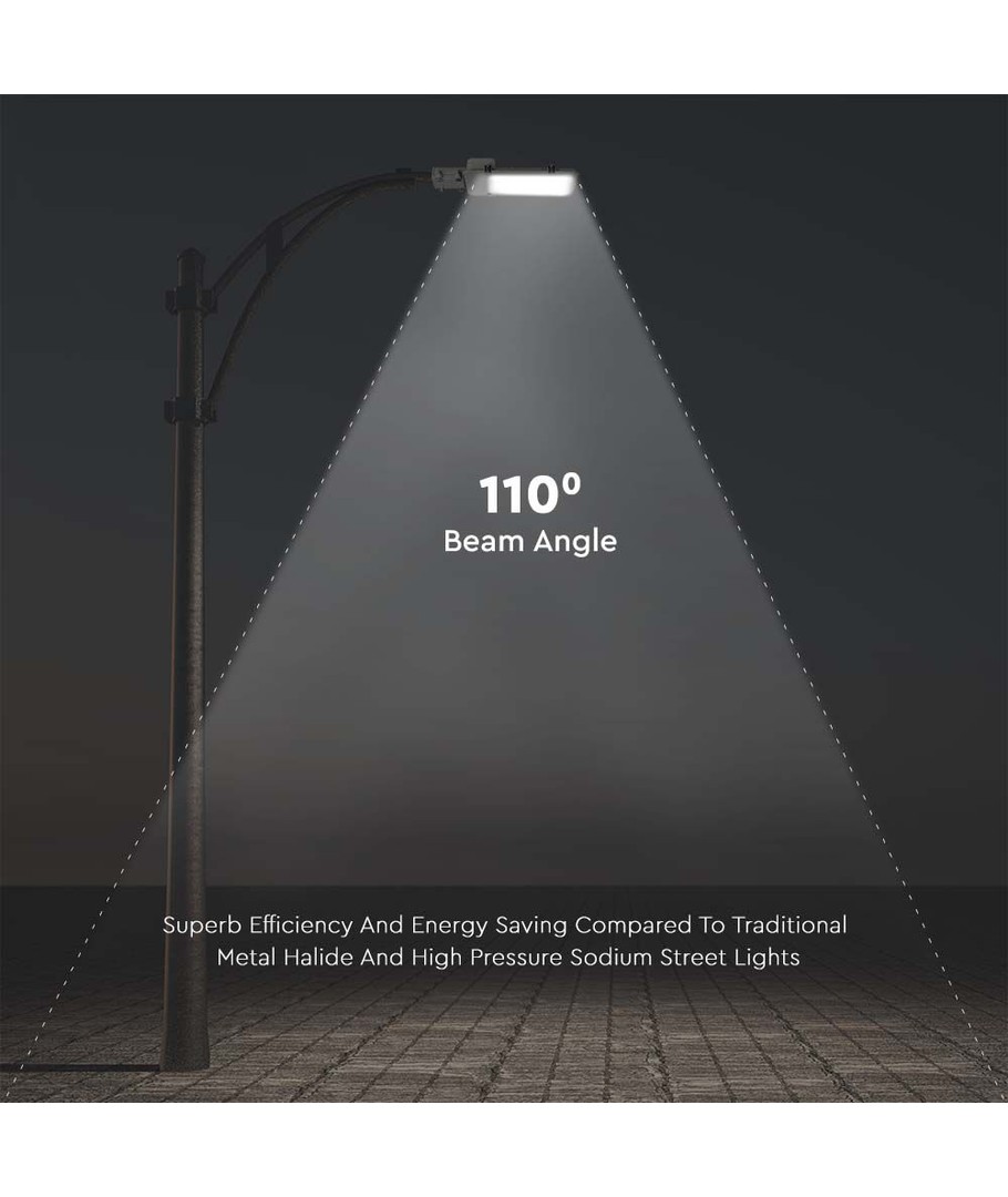 Denna kraftfulla LED-gatlykta är designad för att erbjuda optimal ljusfördelning och hållbarhet för utomhusmiljöer. Med en effekt på 150W och en imponerande ljusstyrka på 17250 lm, säkerställer den en jämn och effektiv belysning.