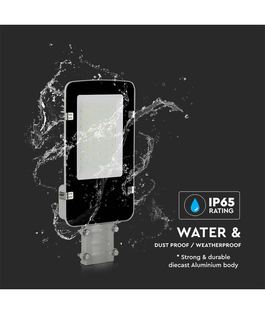 Med en robust design och ett IP65-klassat skydd är denna gatlykta idealisk för utomhusbruk. Den är motståndskraftig mot regn och vattenstänk, vilket gör den till ett pålitligt val för alla utomhusmiljöer där ljusstyrka och hållbarhet är nödvändiga.