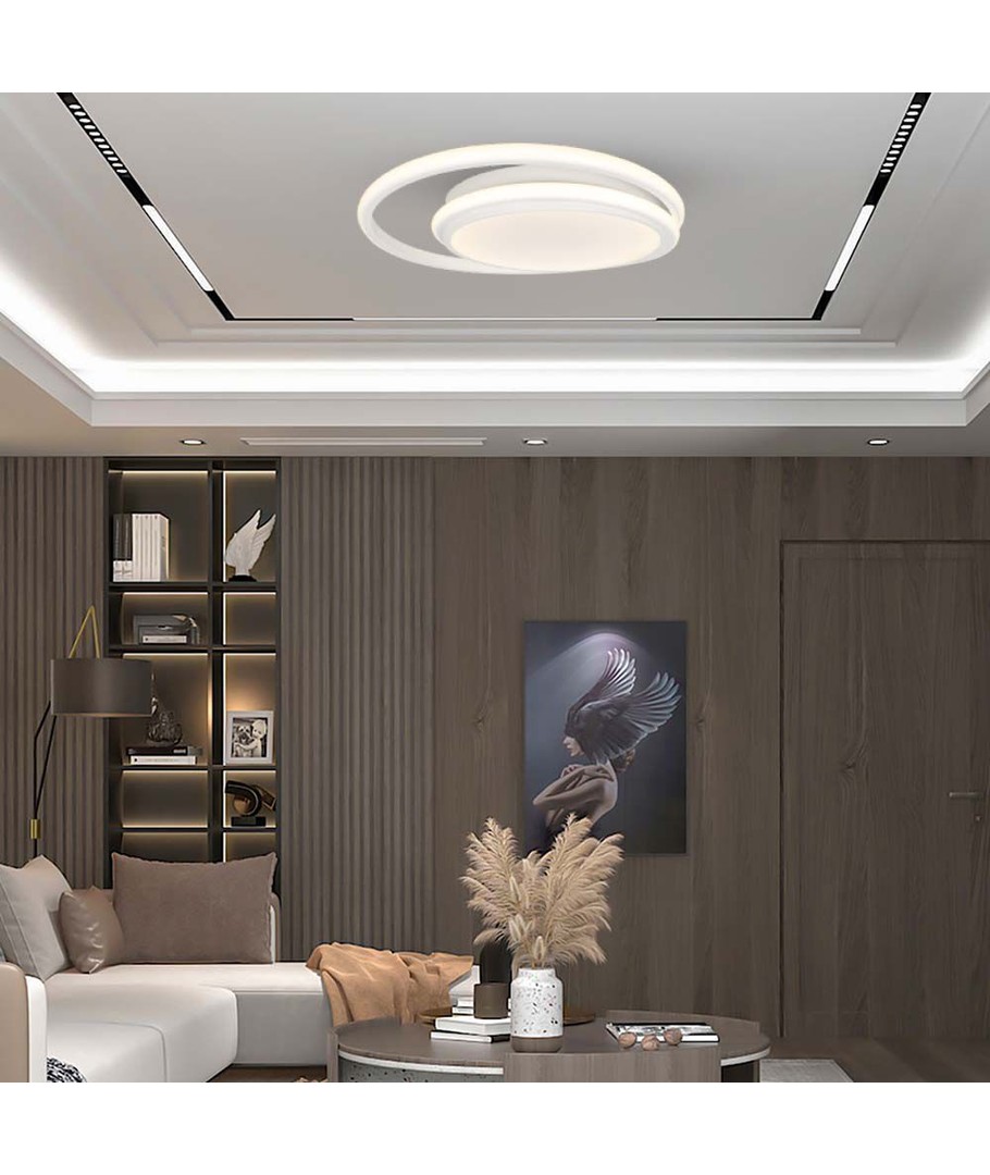 Med dess dubbel, rund och eleganta form är den inte bara en ljuskälla utan också en stilfull detalj i inredningen. Montaget är enkelt tack vare den integrerade ljuskällan, vilket sparar tid och ansträngning vid installation.