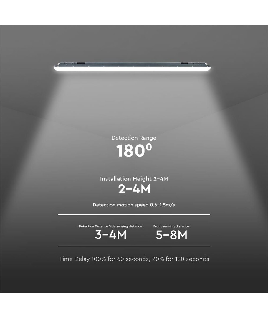 | Yderligere bemærkninger | Max in series: Upto 10 Units. Sensor type: Microwave Sensor. Sensor distance: 3-4M, 5-8M. |