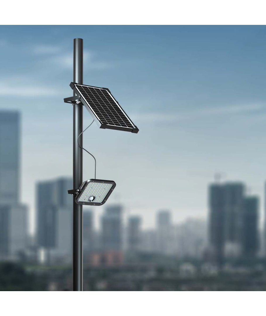 Ge ditt utomhusutrymme ett starkt och jämnt ljus med denna slitstarka solstrålkastare.
