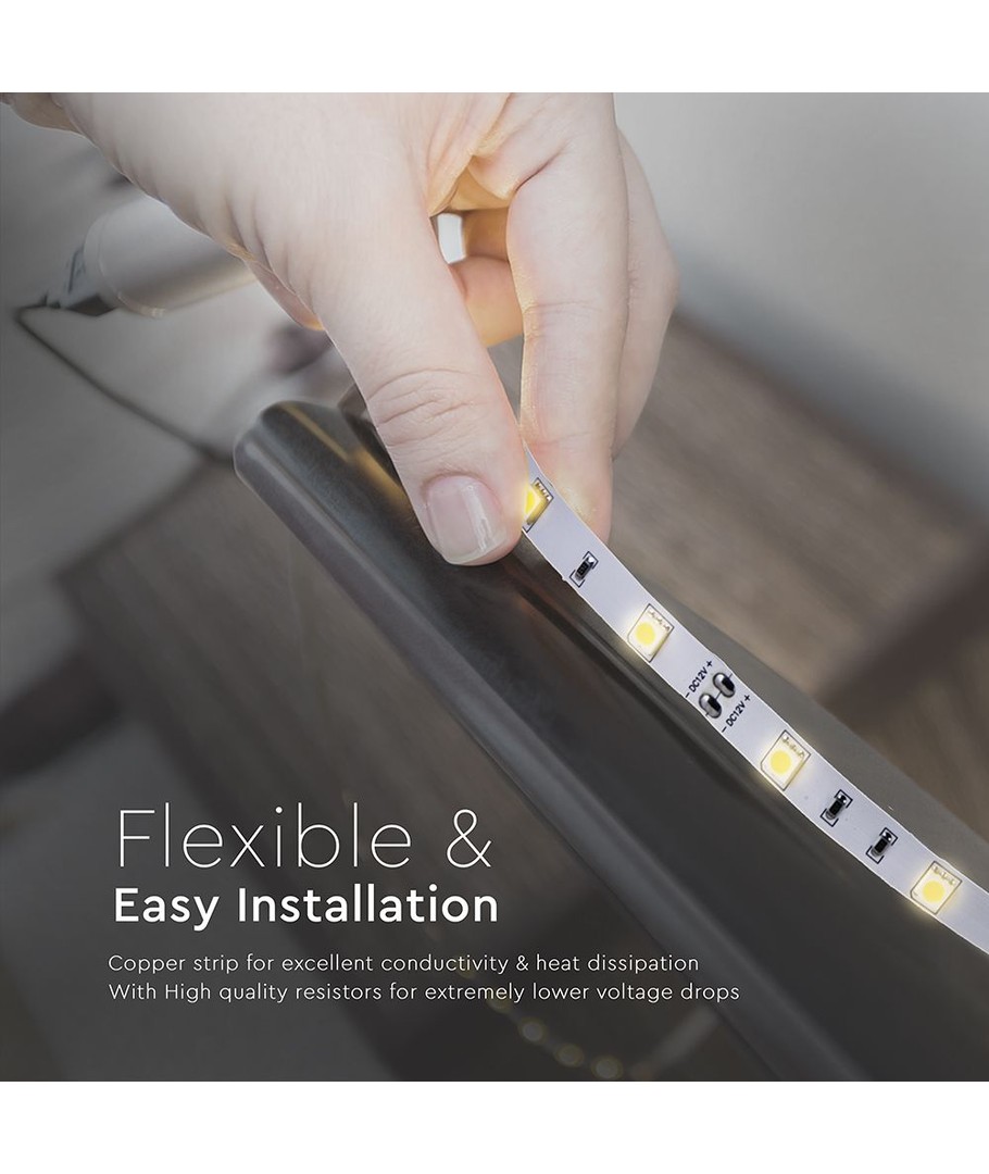 Dessa LED-remsor är ett perfekt val för den som är ute efter en kombination av kvalitet och ett estetiskt tilltalande ljus. Använd dem i torra utrymmen där ljuskvaliteten kan uppskattas och skapa en mysig och inbjudande miljö.