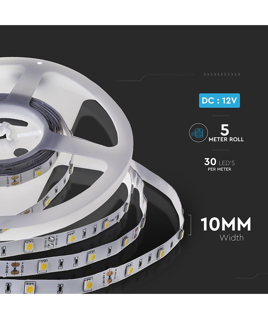 Den här LED-remsan erbjuder 30 LED-remsor med en effekt på 4.8W, vilket ger tillräckligt ljus för de flesta ändamål. Med en färgtemperatur på 3000K bidrar den till att skapa ett varmt och avkopplande ljus som ger en trevlig stämning i rummet.