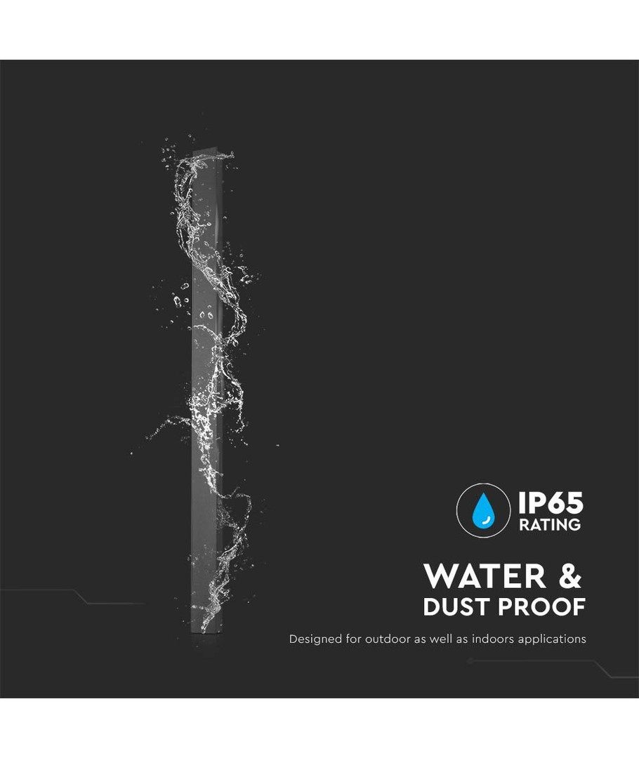 Tack vare den breda spridningsvinkeln på 150 grader, ger lampan en jämn och väl fördelad belysning, perfekt för både arbetsrum och utomhusgångar. Den tunna profilen med dimensionerna 1010 x 60 x 50 mm gör att den smälter in i olika miljöer utan att ta över.