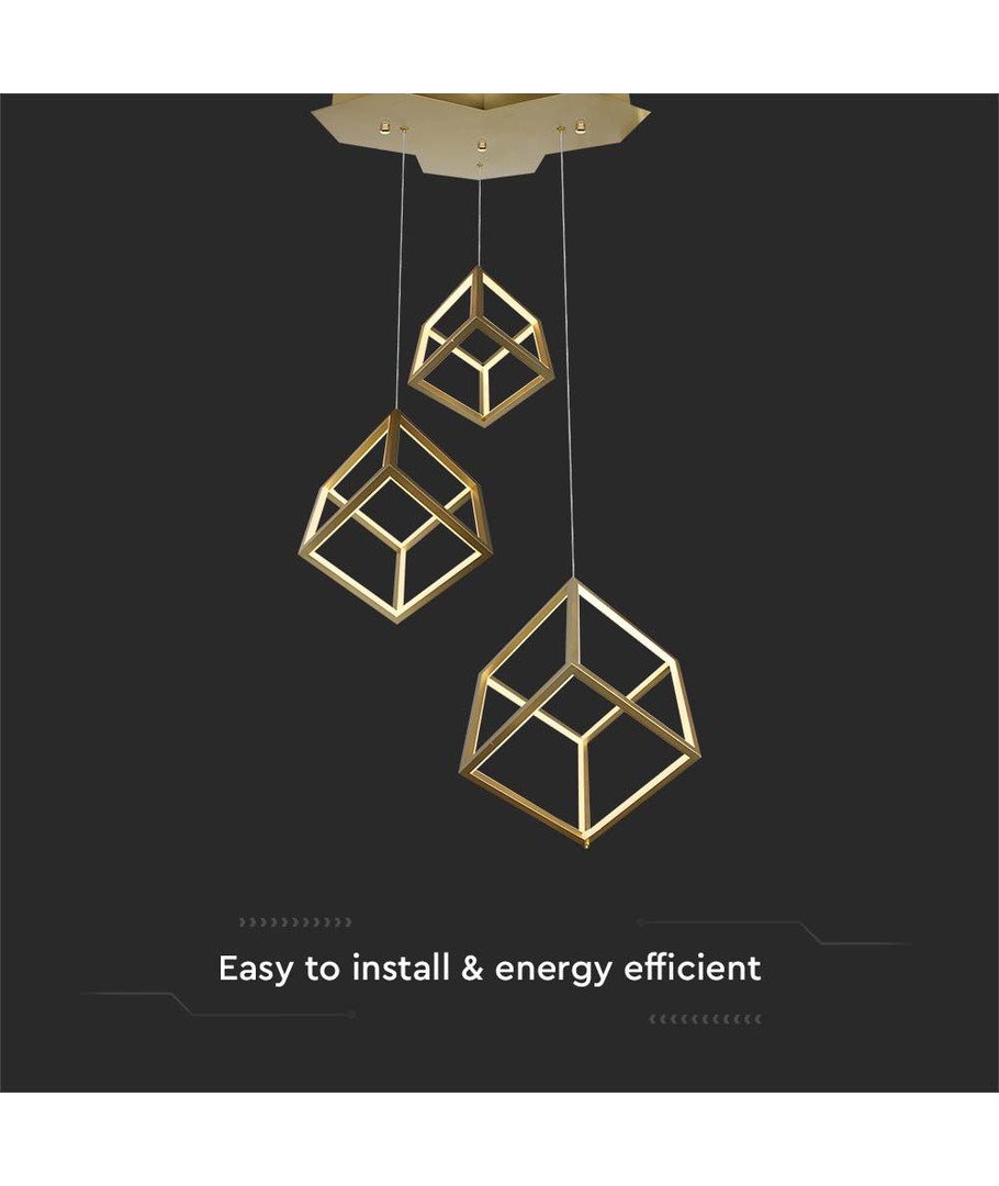 Lampans design i guldfärg förenar estetisk elegans med funktionell belysning. Dess dimensioner och design gör den perfekt för placering i olika rum, såsom vardagsrum, matsal eller andra utrymmen där du vill skapa en varm och inbjudande atmosfär.
