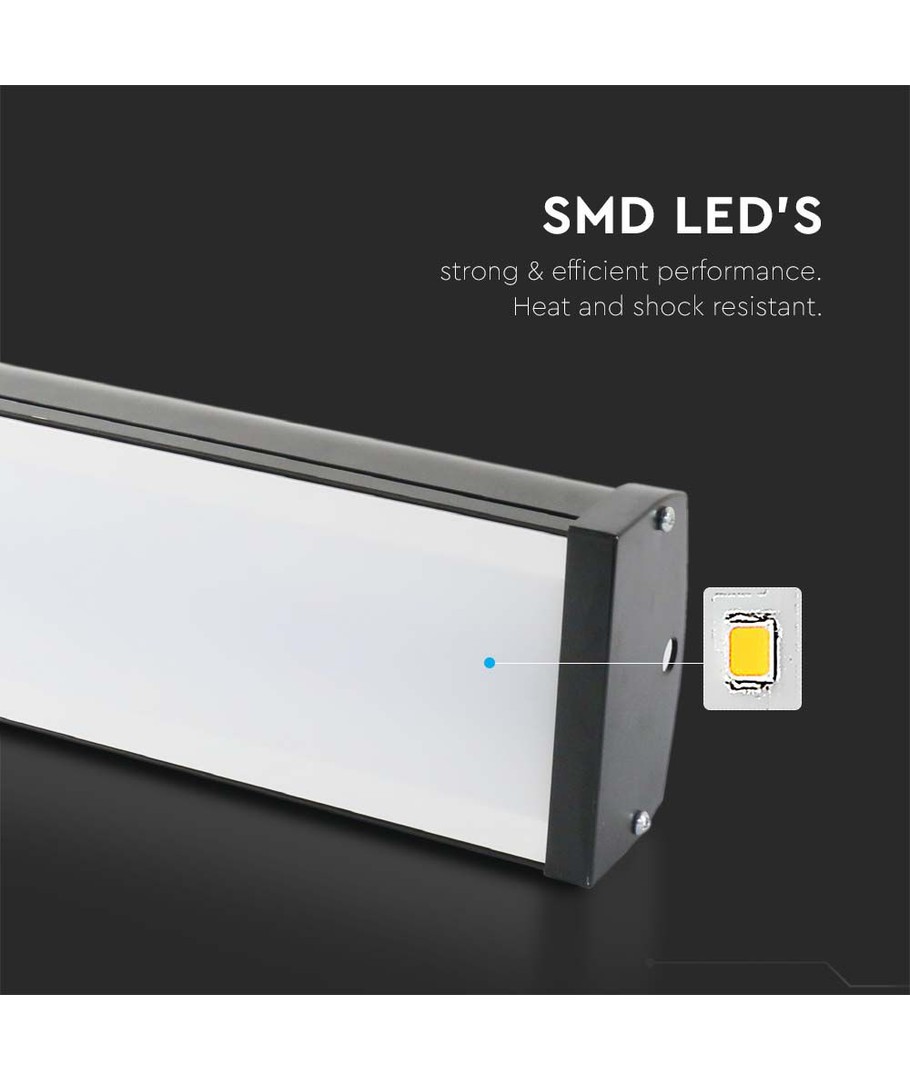 Den linjära highbay 100W är det perfekta valet för dig som behöver ett kraftfullt, tillförlitligt och energieffektivt belysningsalternativ för stora utrymmen med specifika belysningskrav.