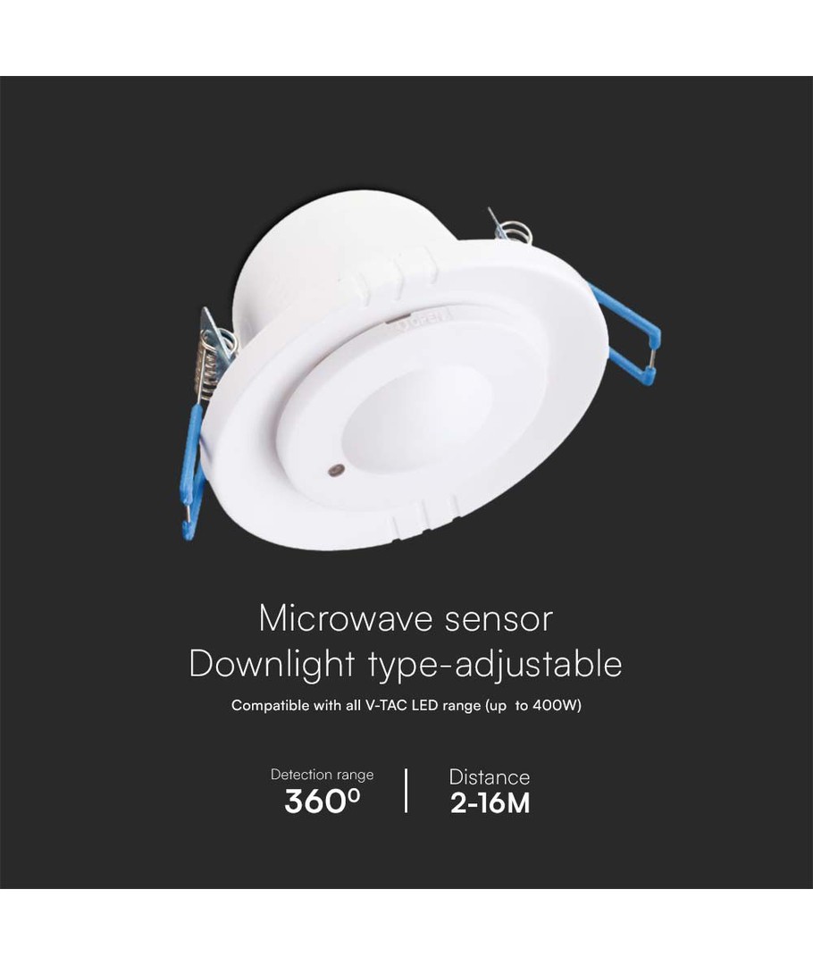 300W Mikrovågs Rörelsesensor erbjuder effektiv 360° täckning i en minimalistisk vit design, idealisk för bostadsbruk.