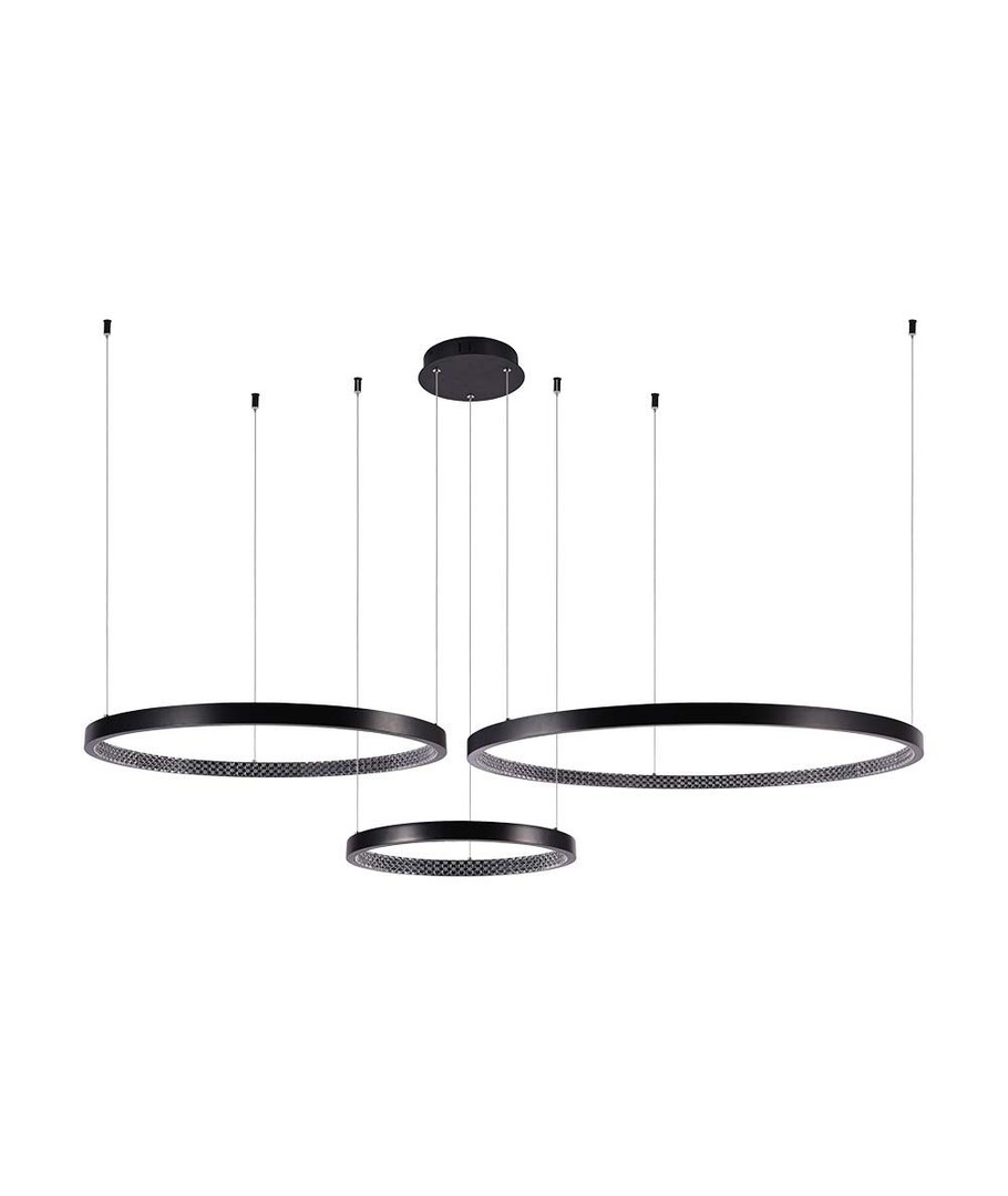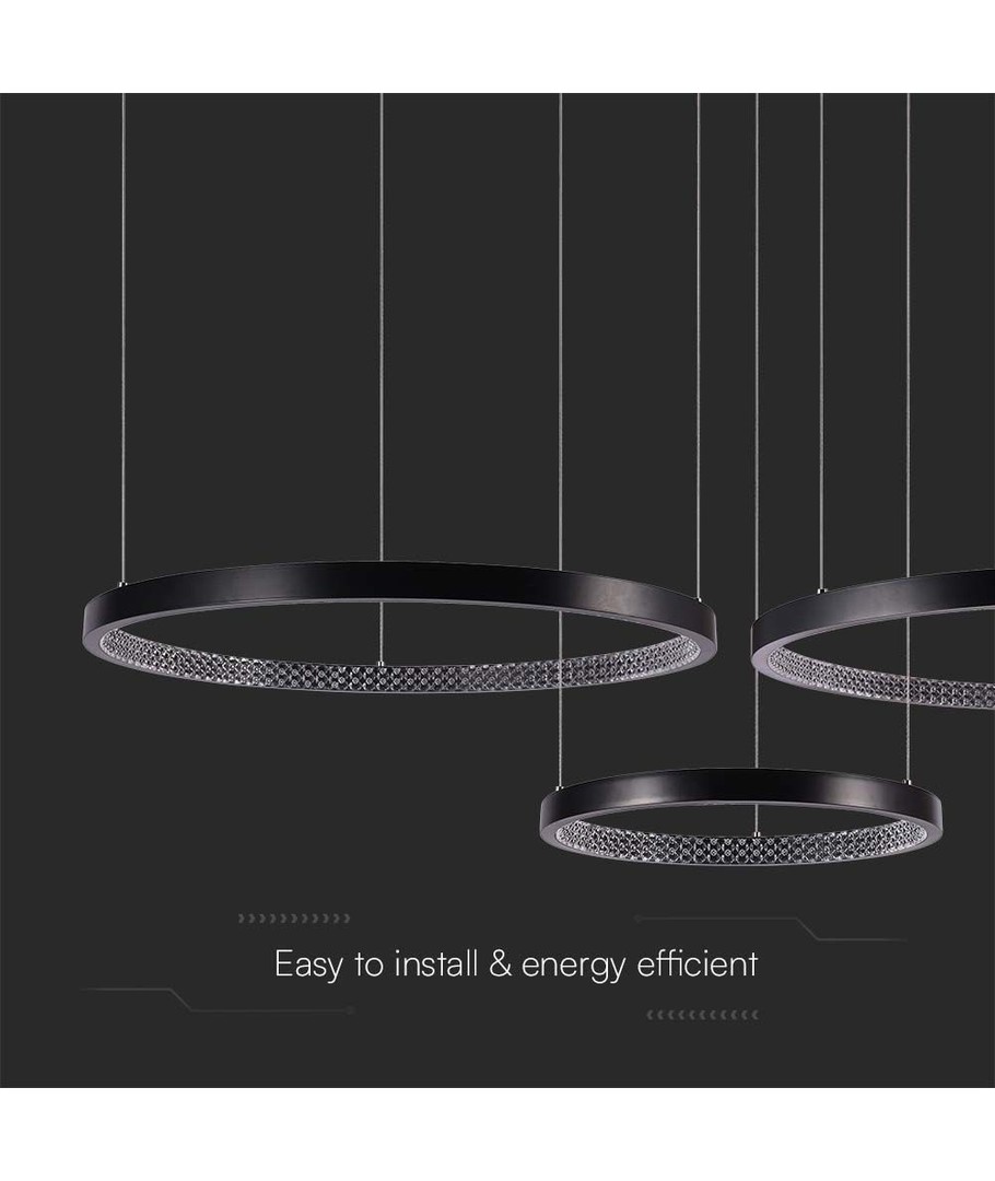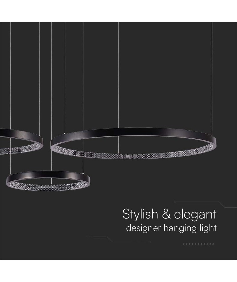 Denna hänglampa kombinerar modern design och effektiva ljusegenskaper för att förbättra ditt inomhusutrymme. Med en elegant struktur, kristallakryl och en svart finish, blir den ett stilrent tillskott i vilket rum som helst.