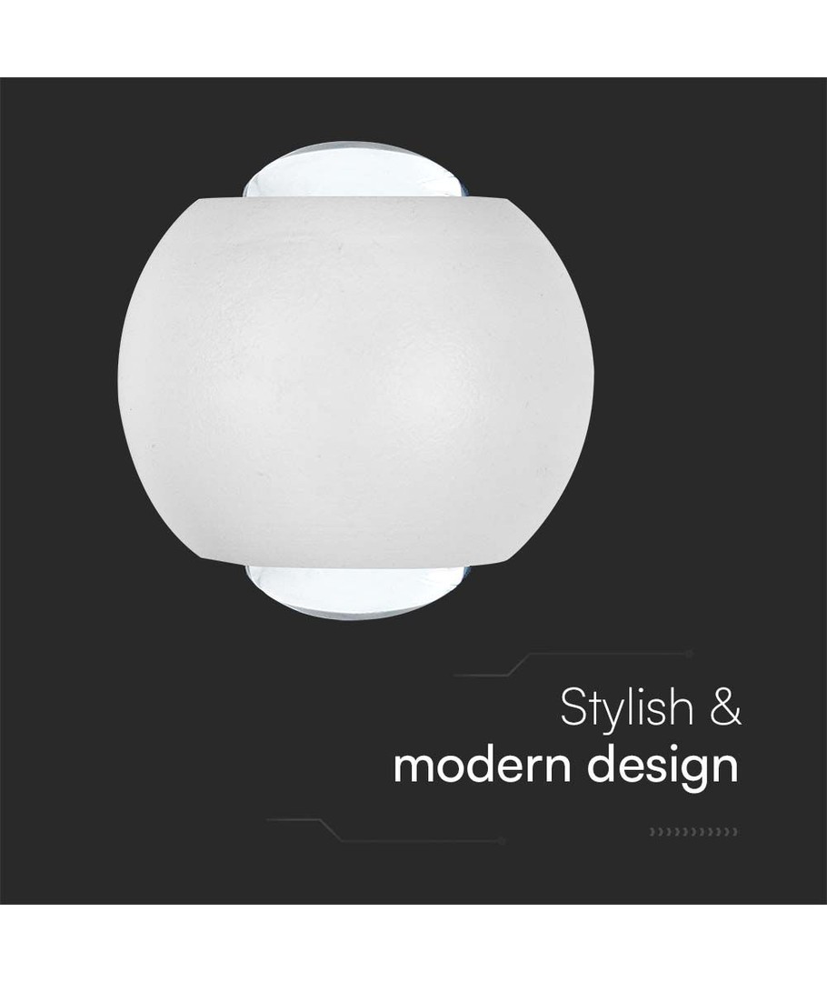 Denna eleganta vägglampa erbjuder en kombination av stilren design och funktionalitet. Med en kompakt storlek på 42 x 40 mm och ett stilrent vitt hus smälter den perfekt in i många miljöer.