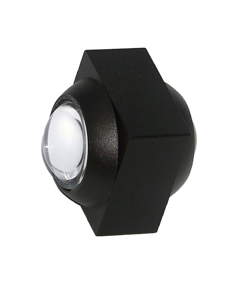 Denna lampa är designad för att monteras på väggen och dess kompakta dimensioner på 50 x 40 x 40 mm gör den perfekt för trånga utrymmen. Med sitt svarta hölje ger den ett modernt och diskret intryck.