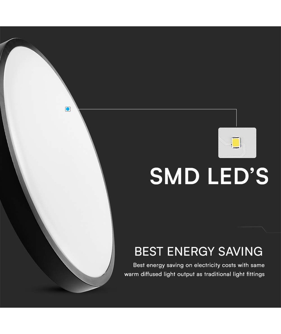 Denna taklampa erbjuder en effekt på 36W och förenar stilfull design med avancerad teknologi. Den runda svarta ramen ger en modern och elegant touch till vilket rum som helst.