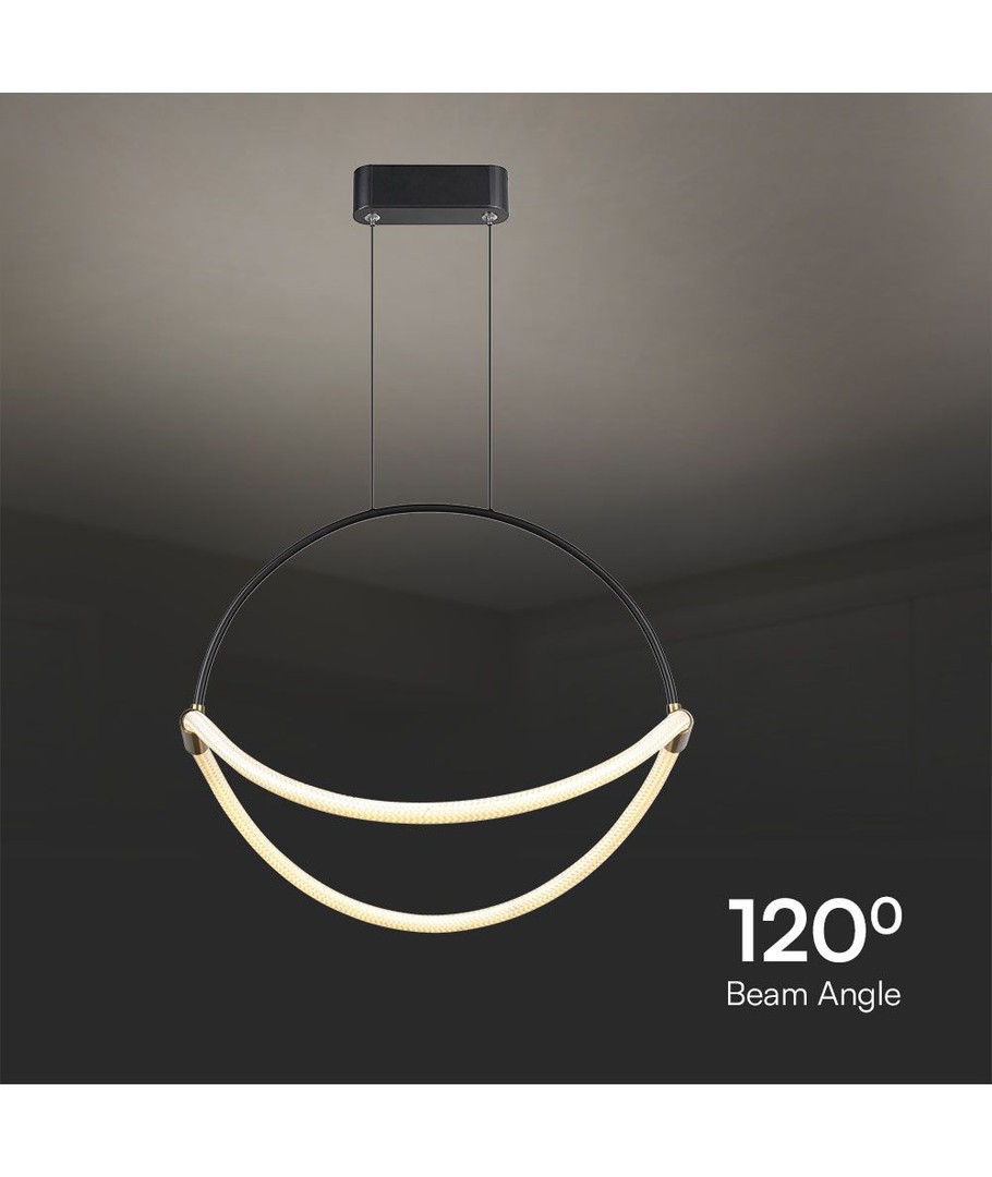 Denna pendel erbjuder hög ljuskvalitet med ett RA-värde mellan 80 och 85, vilket garanterar att färger återges på ett naturligt sätt. Med en ljusstyrka på 1920 lm och en bred spridning på 120 grader, säkerställer denna lampa en jämn fördelning av ljuset som klarar av de flesta belysningsbehov.
