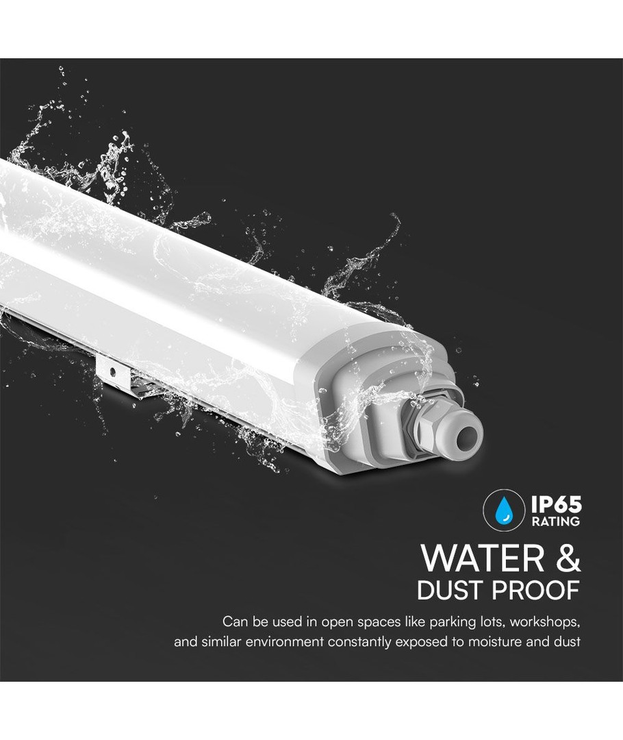 Det kallvita ljuset på 6500K erbjuder en tydlig blåaktig nyans, idealiskt för speciella användningsområden som lackering, akvarier och andra dekorativa ändamål. Produkten har en integrerad ljuskälla för enkel installation och underhåll.