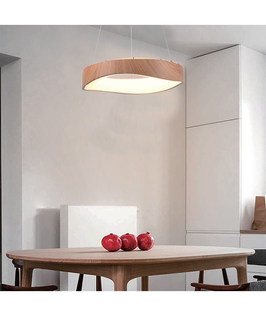 Skapa en stilren och avkopplande atmosfär i ditt hem med denna eleganta LED designer hänglampa. Med sin moderna kombination av träfärg och vit passar den perfekt i alla inredningsstilar. Denna lampa är en idealisk lösning för dem som söker både funktion och design.