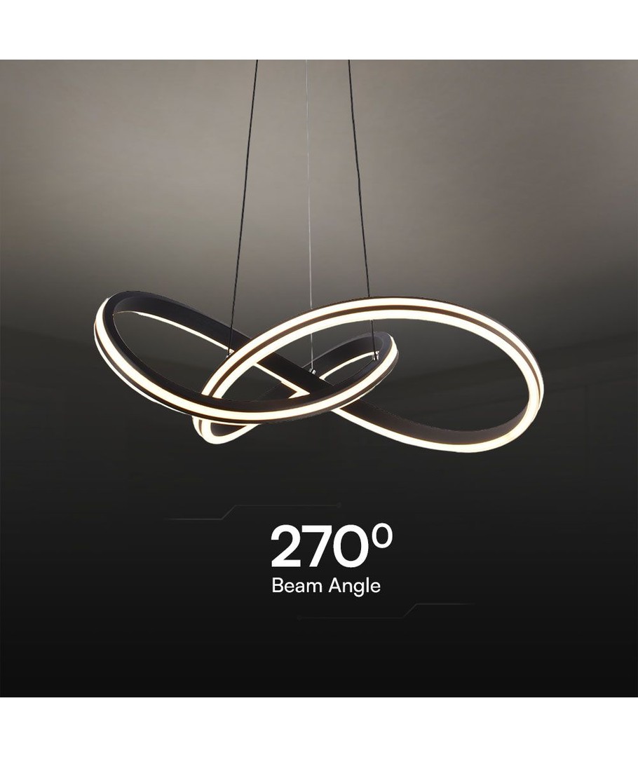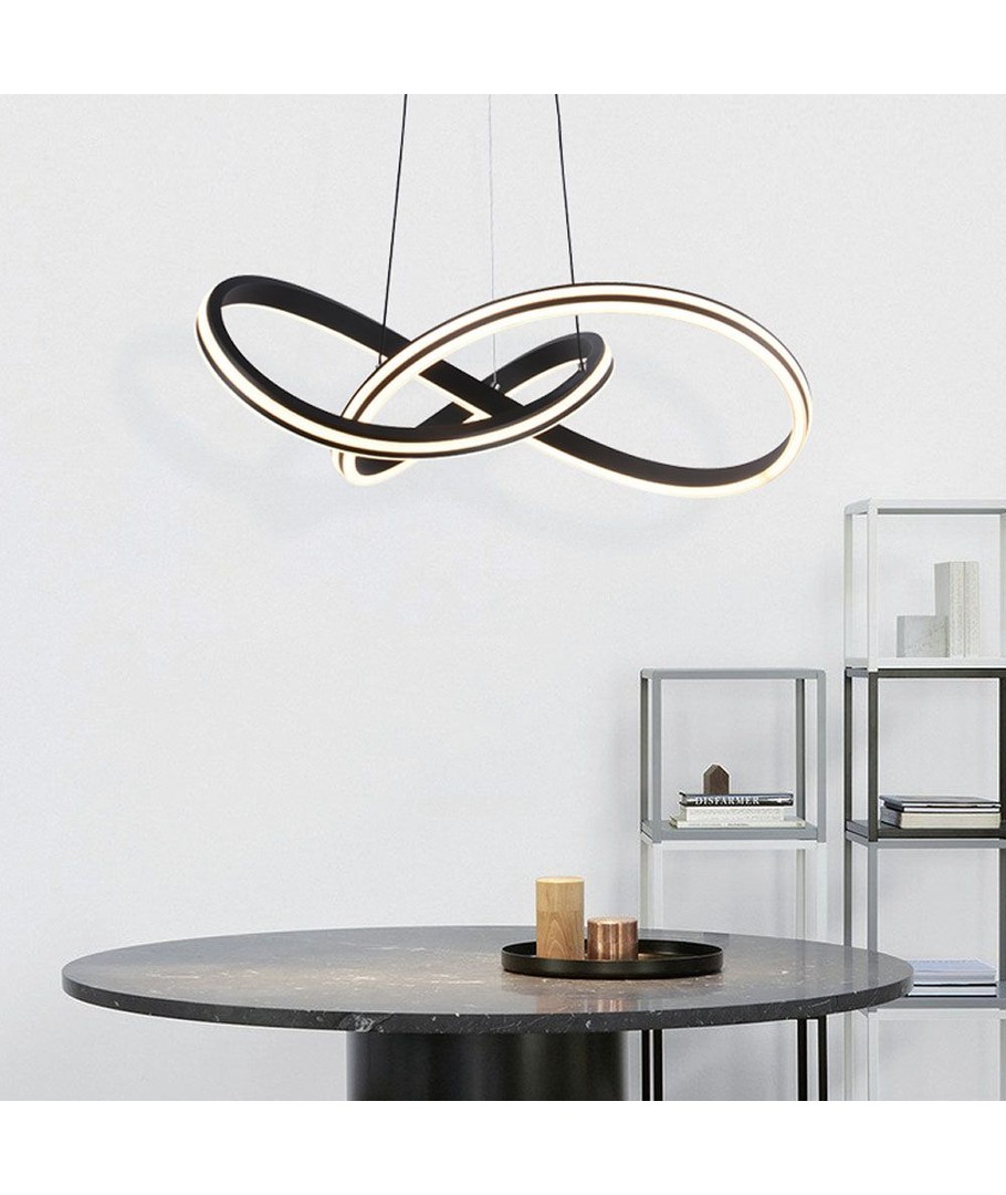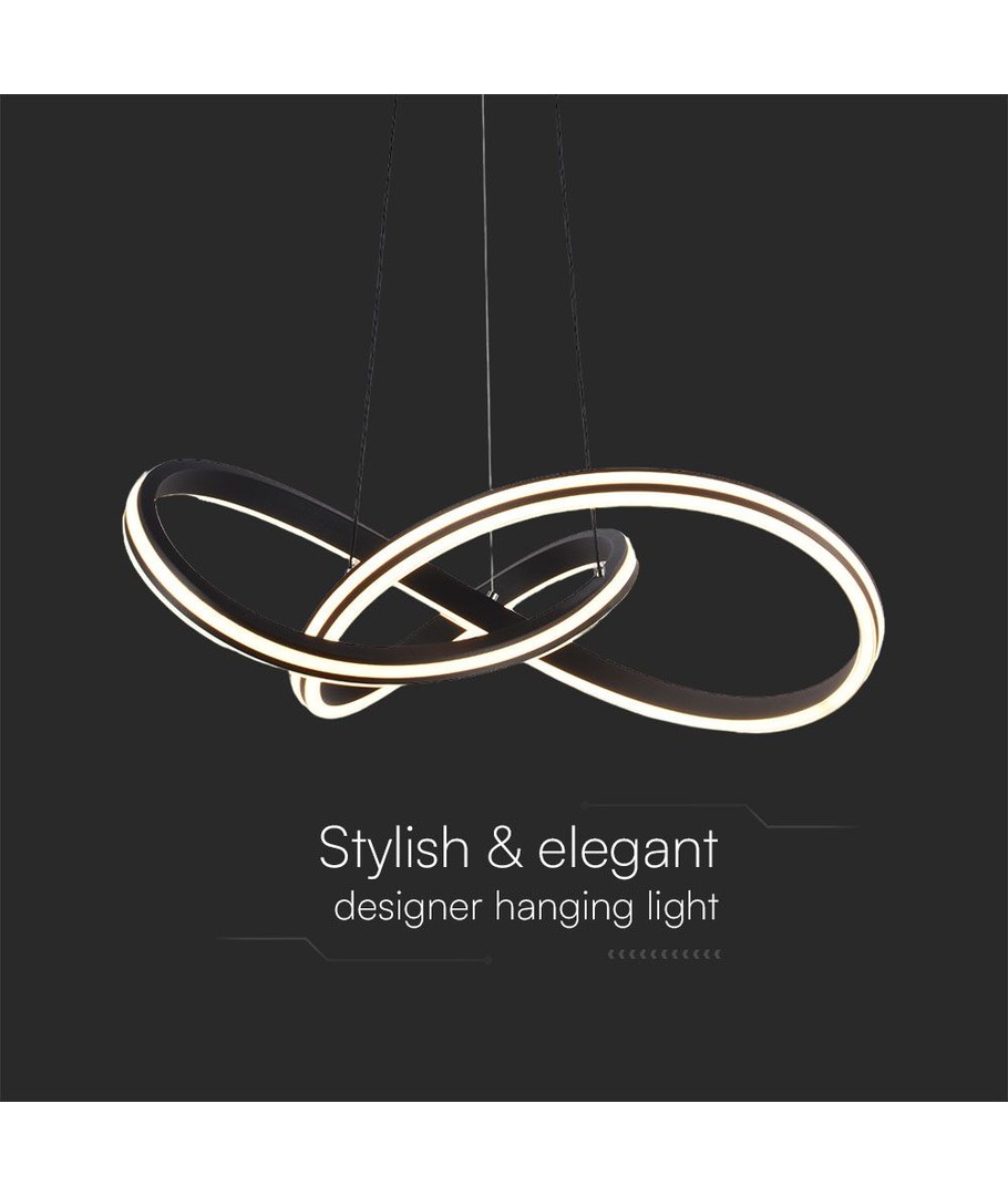 Denna LED-designerhängelampa kombinerar modern elegans med hög funktionalitet. Med sin stilrena svarta design passar lampan perfekt i både hem och kontor, och blir en central del av inredningen.