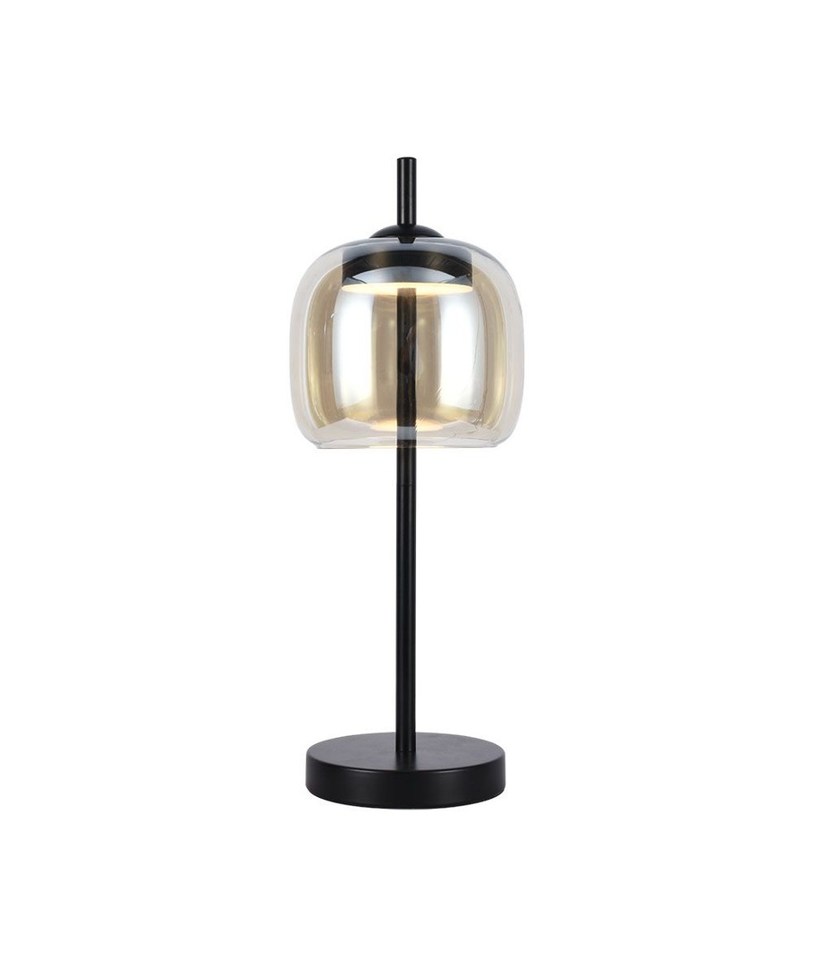 Denna bordlampa kombinerar stil och funktionalitet för att skapa en behaglig ljusmiljö i ditt hem. Med en genomtänkt design i metall och glas utstrålar den både modernitet och elegans, perfekt för alla interiörer.
