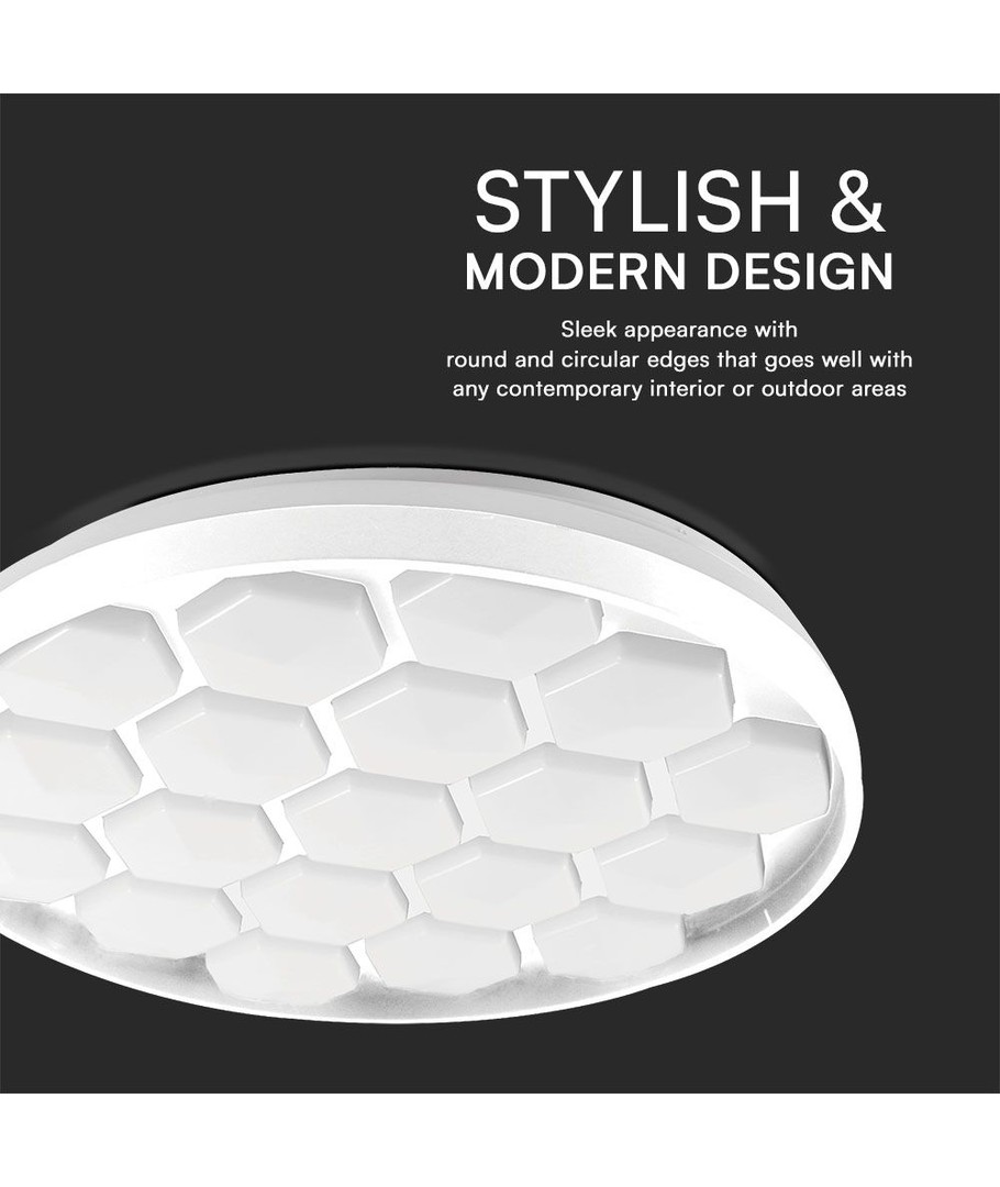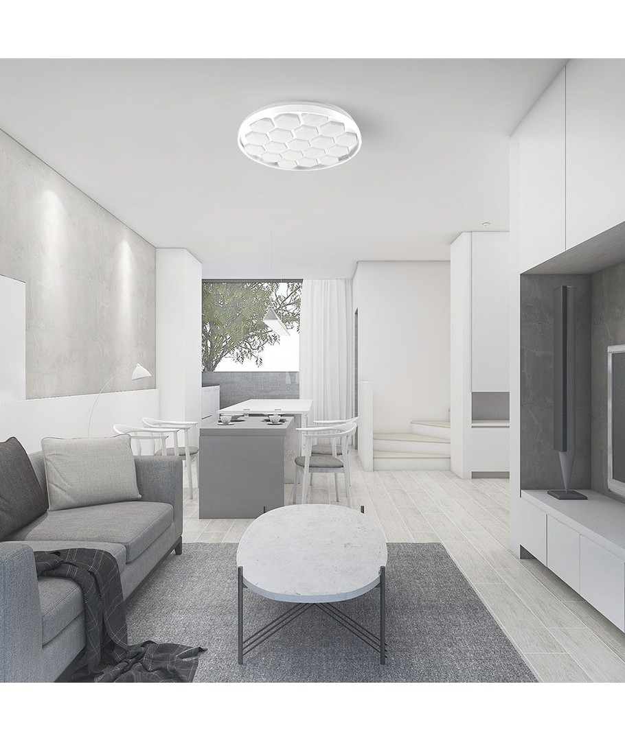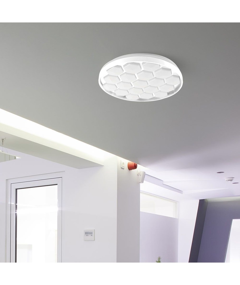 Den stilrena kupollampans design är inte bara visuellt tilltalande, utan också praktisk. Dess bikupemönster sprider ljuset jämnt för att minimerar bländning och skapa en behaglig belysningsmiljö.