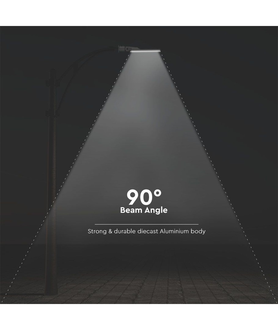 Denna gatulampa integrerar den senaste LED-tekniken med pålitliga Samsung-chip, vilket gör den till ett utmärkt val för både industriella och kommersiella belysningsbehov. Med integrerad ljuskälla minskas behovet av underhåll och byte av lampor över tid. Dess kallvita ljus med en blåaktig nyans erbjuder en fräsch och ren atmosfär.