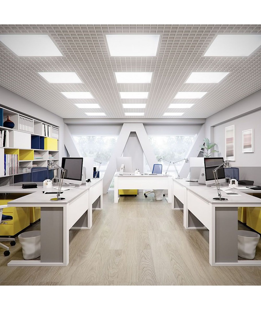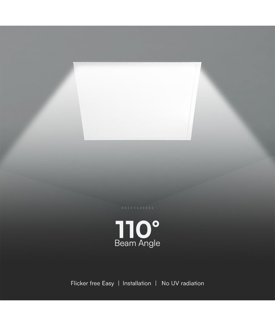 Huvudegenskaper:Mätningar och designen gör det möjligt att enkelt installera produkten i standardtak med dimensionerna 595 x 34 x 595 mm. Om du letar efter en flimmerfri, effektiv och hållbar belysningslösning är denna LED-panel det perfekta valet för dig.