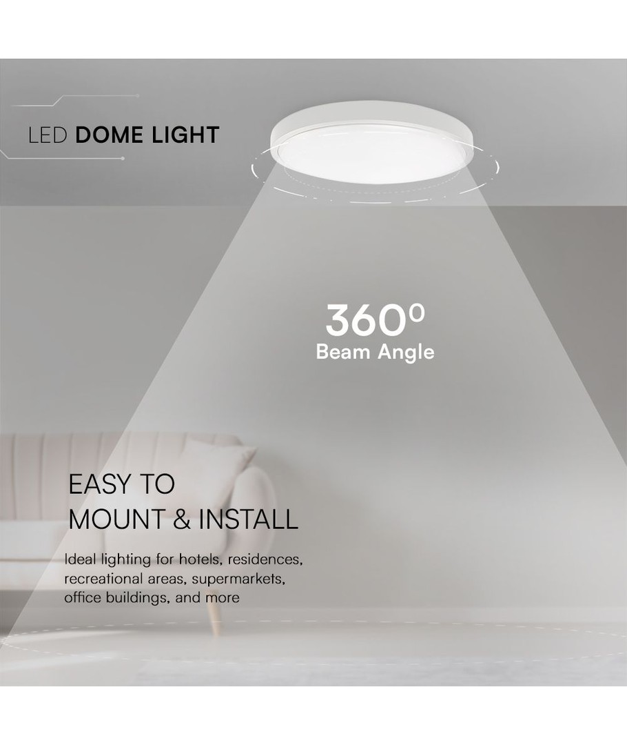 Denna LED-dome erbjuder en effekt på 18W, vilket ger en imponerande ljusstyrka på 1830 lm. Den säkerställer ett naturligt vackert ljus med ett RA-värde på 80-85, vilket garanterar att alla färger återges genuint och naturligt. Denna ljuskvalitet täcker de flesta av dina belysningsbehov.