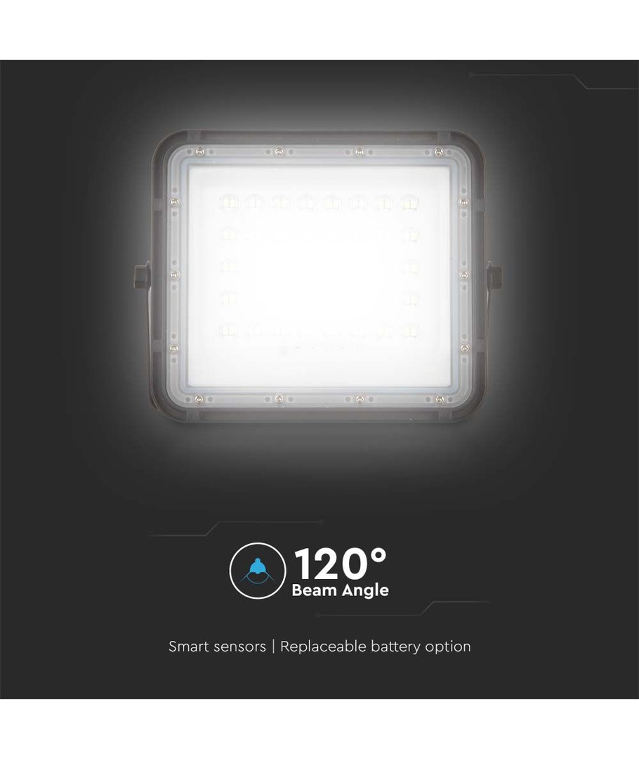 Denna kraftfulla solstrålkastare erbjuder en ljusstyrka på 800 lm och en imponerande spridning på 120 grader, vilket säkerställer en jämn och bred fördelning av ljuset. Det är det perfekta valet för att skapa en väl upplyst och säker utomhusmiljö.