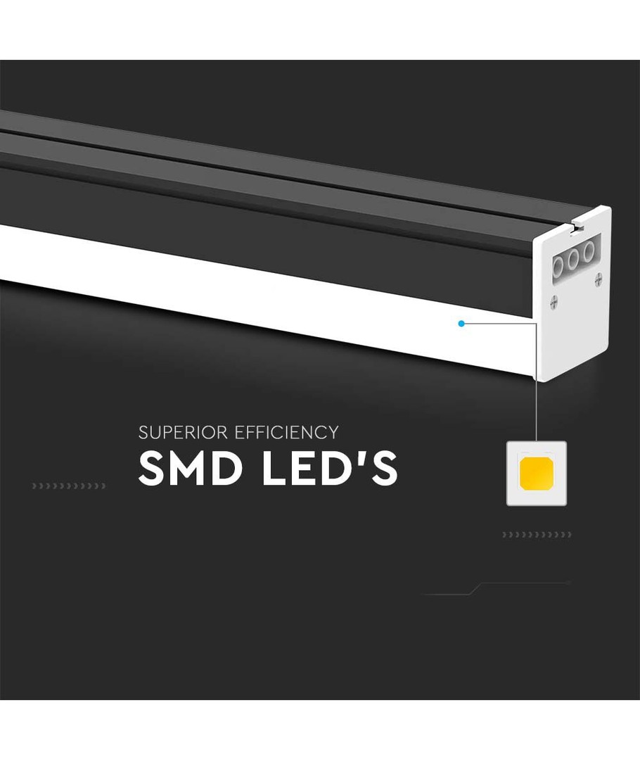 Denna 40W LED Linjär Ljuskälla kombinerar effektivitet och stil med sitt eleganta svarta hölje. Med en ljusstyrka på 4300 lm och en bred spridning på 120 grader får du en jämn och effektiv belysning för dina behov. Ljuskällan ger en neutralvit nyans på 4000K, vilken är idealisk för en behaglig arbetsmiljö utan störande blåa eller gula toner.