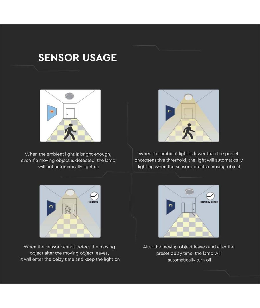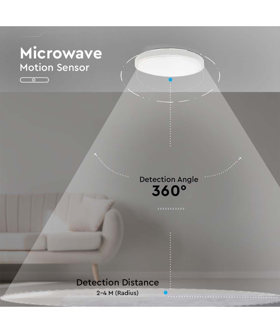 Denna moderna 24W LED Dome Ljuskälla erbjuder en pålitlig och energieffektiv lösning för ditt belysningsbehov. Ljuskällan inkluderar en mikrovågssensor och är komplett med en elegant vit ram, vilket passar perfekt in i olika miljöer.
