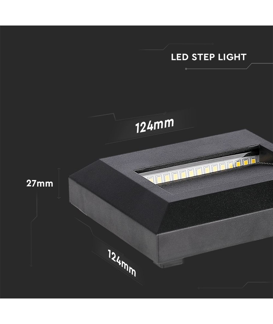 Denna trappstegsbelysning har en stilren kvadratisk design med en svart husfärg som smälter in i de flesta miljöer. Med sina mått på 124 x 27 x 124 mm är den kompakt och enkel att installera var som helst där extra belysning behövs. Plus, tack vare den integrerade ljuskällan, behöver du inte oroa dig för att byta lampor.