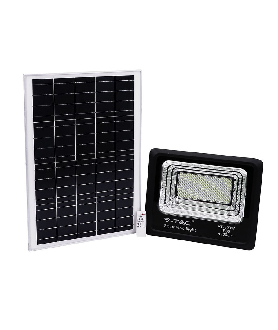 Denna högkvalitativa LED-projektor kombinerar energibesparing och effektivitet med en inbyggd 300W VT solpanel som säkerställer att du får kraftfull belysning utan att förlita dig på elnätet.