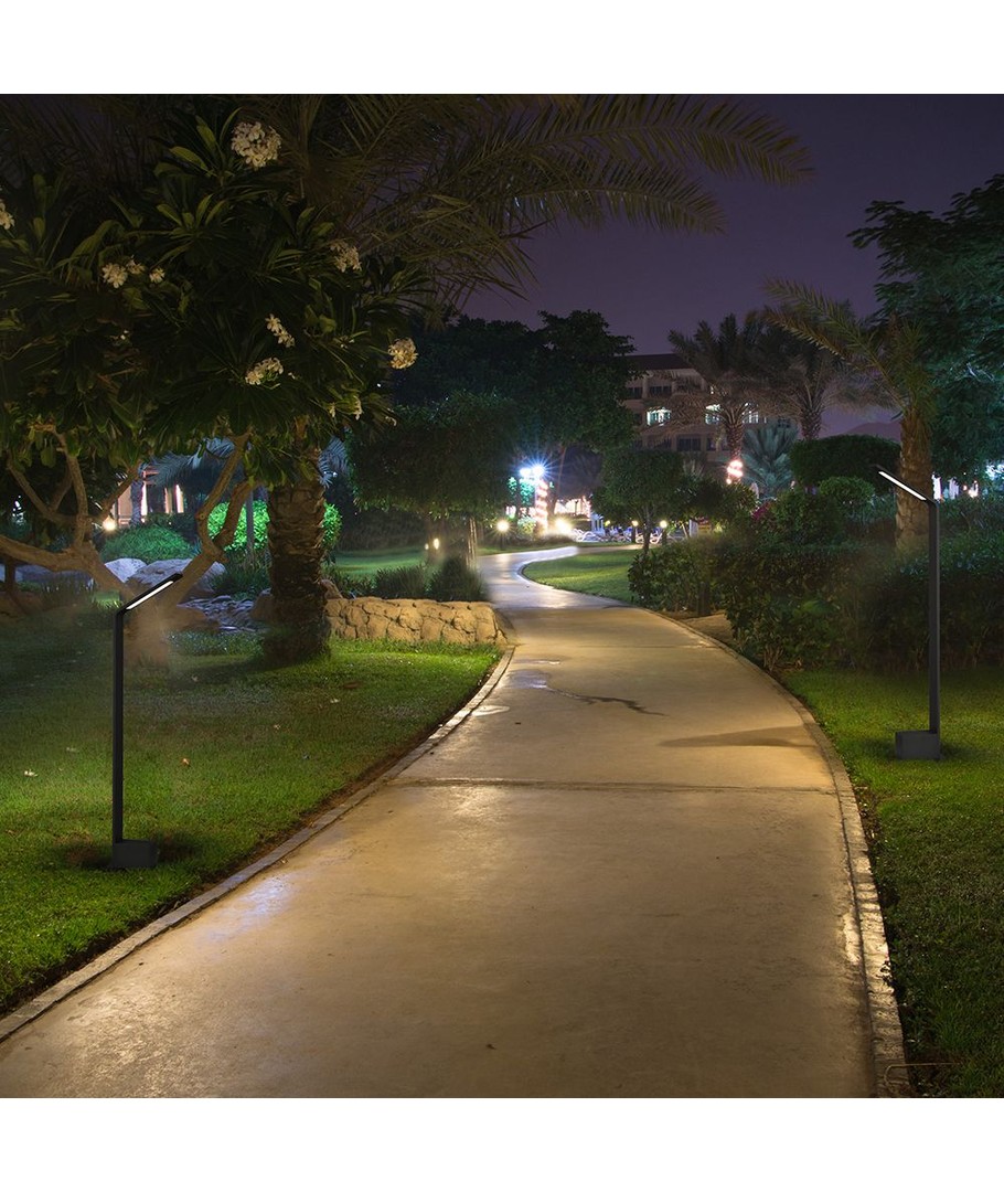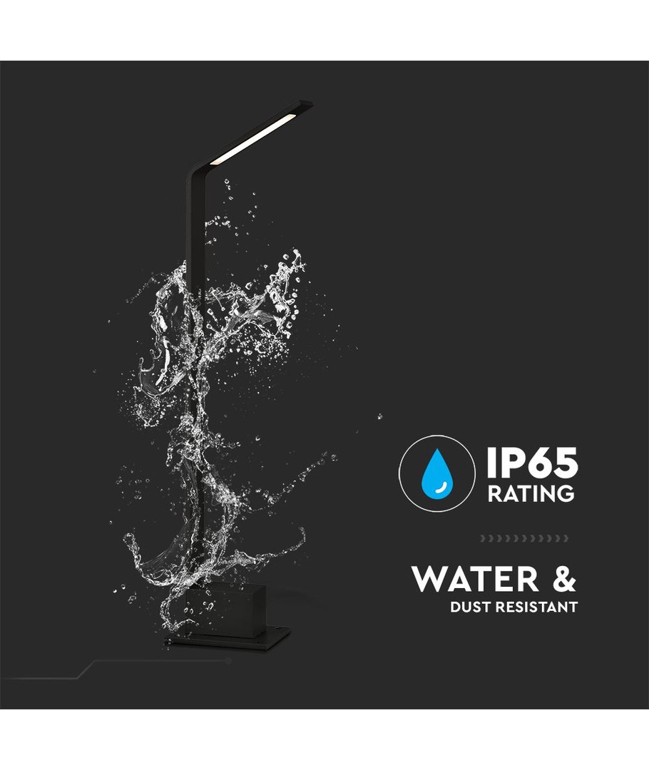 Konstruktionen av lampan är gjord för att tåla utomhusförhållanden med en IP65-klassning. Detta gör den resistent mot vattenstänk och regn, vilket gör den idealisk för trädgårdar, gångvägar och andra utomhusområden.