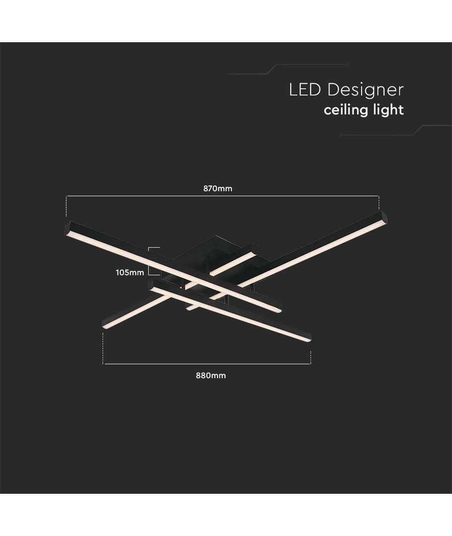 Denna taklampa har en stilren design med ett svart hus i metall, vilket ger ett modernt och elegant utseende. Dess dimensioner är 880 x 105 x 870 mm, vilket passar perfekt i många olika typer av rum.