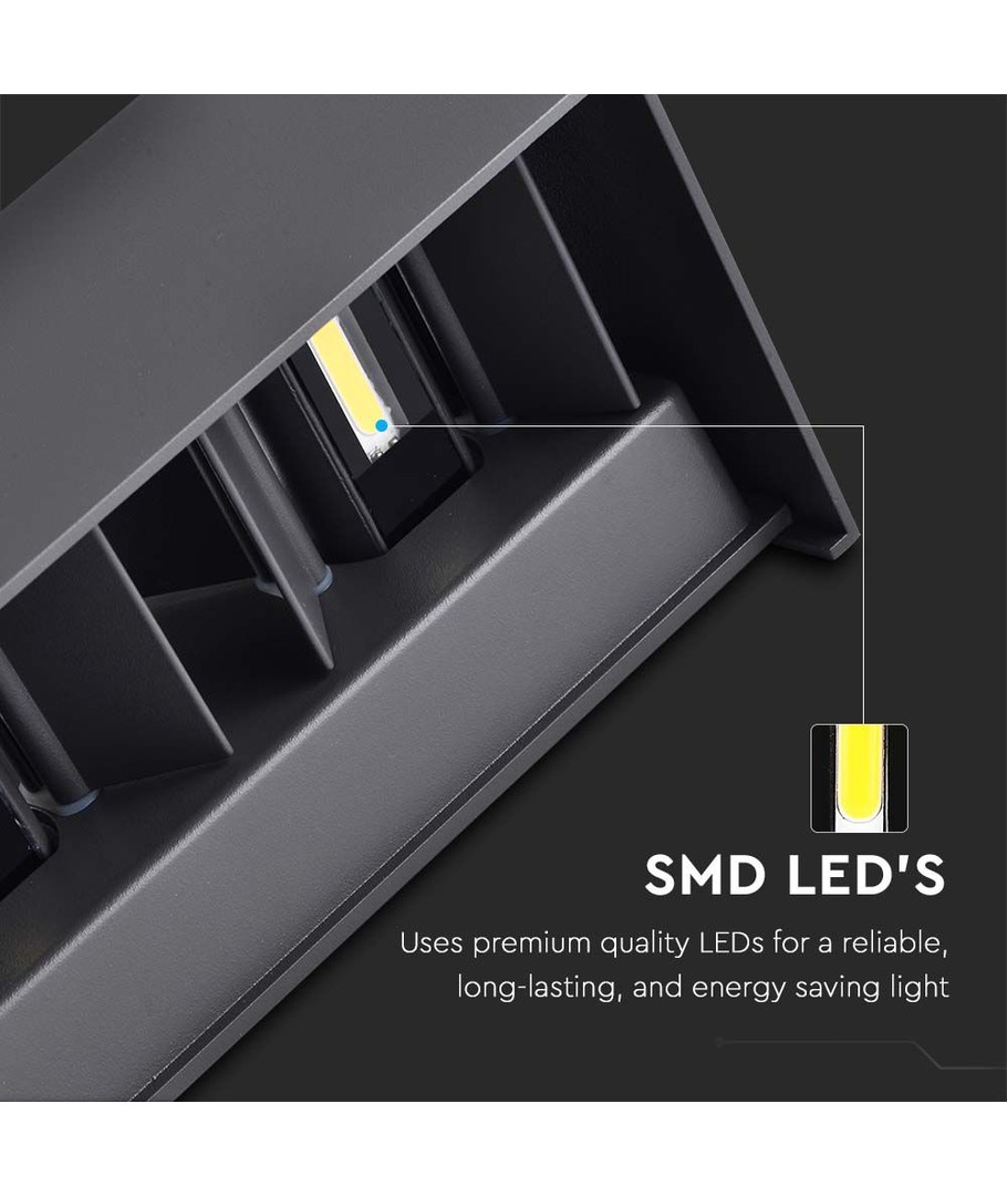 Denna stilrena LED-vägglampa kombinerar modern design med effektiv belysning för både inomhus- och utomhusbruk. Med ett kompakt svart hus och måtten 200 x 100 x 100 mm utgör den ett perfekt tillskott till ditt hem eller arbetsplats.