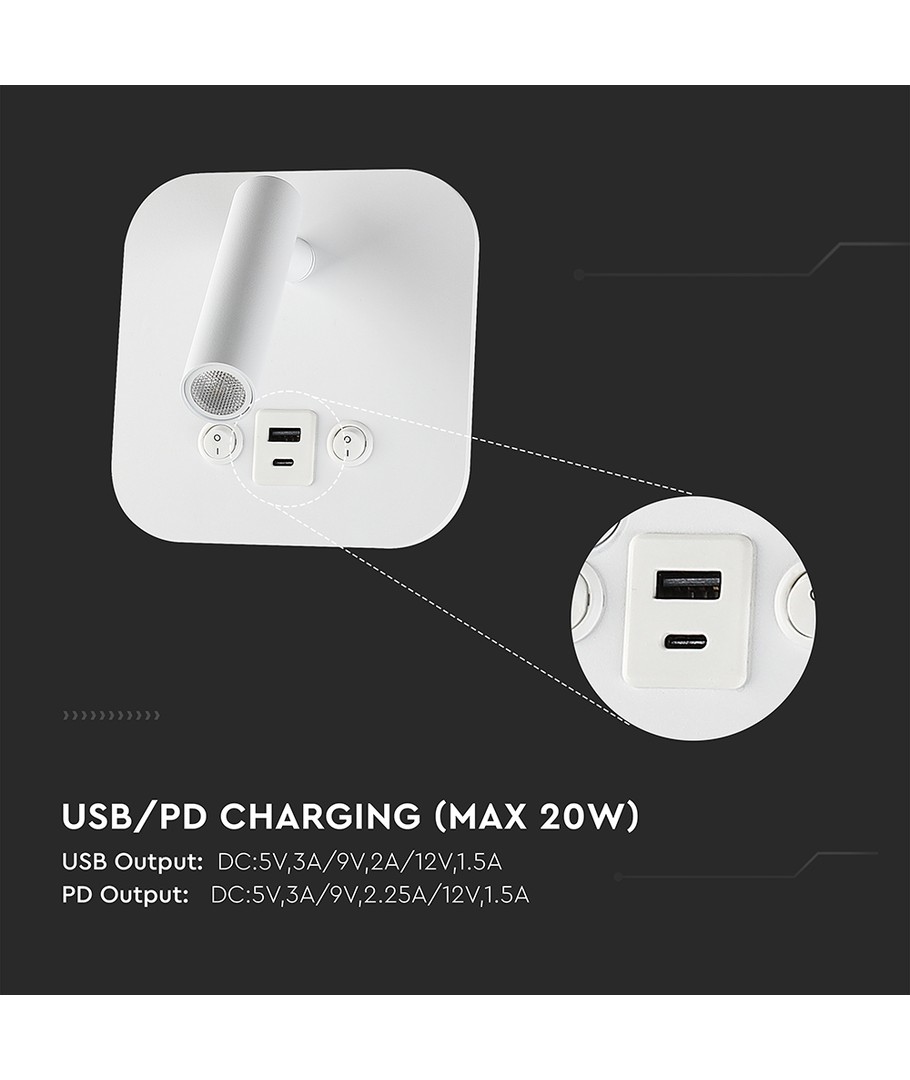 Specifikationer och Fördelar:Denna sänglampa är det perfekta valet för dem som söker både funktionalitet och energi-effektiv belysning med extra laddningsmöjligheter.