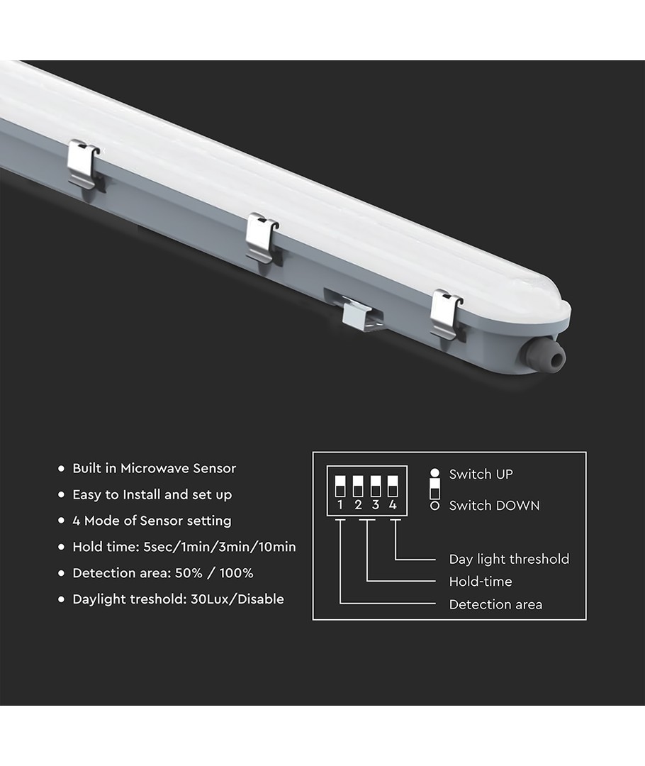 Effekt: 48W som genererar en imponerande ljusstyrka på 5760 lumen. Detta lysrör säkerställer en bred ljusspridning på 120 grader, vilket garanterar en jämn och effektiv belysning.