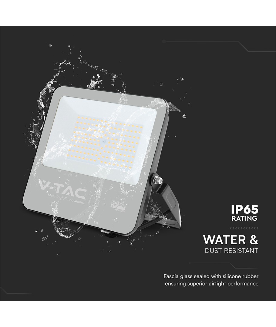 Utrustad med ett IP65-klassat hölje, är denna projektör idealisk för utomhusbruk. Den svarta husdesignen gör den dessutom stilren och diskret i alla miljöer. Det tåliga materialet motstår vattenstänk och är motståndskraftigt mot väder och vind.