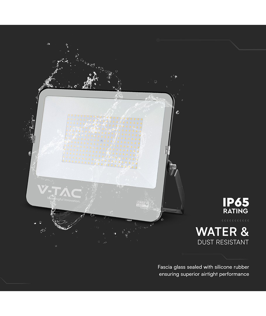 Med sin IP65-klassificering är den perfekt för utomhusbruk och är vatten- och väderbeständig. Oavsett om det regnar eller solen skiner, kommer denna projektor att fungera problemfritt. Med ett svart hus och dimensionerna 406 x 47 x 333 mm – är den både elegant och kompakt.