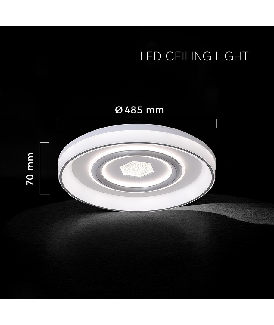 Denna taklampa är utrustad med en integrerad ljuskälla som gör installationen enkel och smidig. Med IR-fjärrkontrollen kan du enkelt justera ljusstyrkan och skapa den perfekta atmosfären i ditt hem. Dess 3-i-1 funktioner ger flexibilitet för olika belysningsbehov.