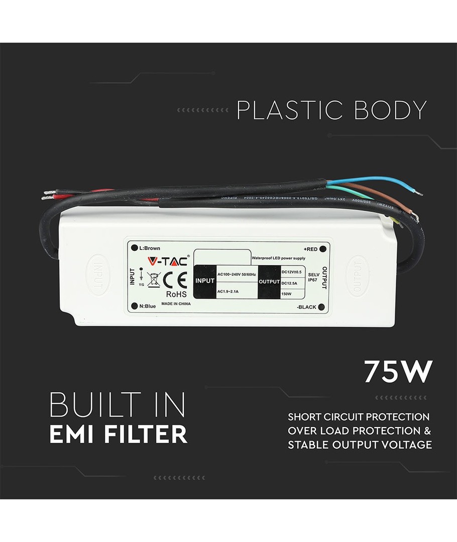 Denna strömförsörjning erbjuder pålitlig och effektiv prestanda för dina LED-installationer. Med en nominell effekt på 75W är den designad för att ge optimal energiförbrukning och belysningsupplevelse. Den passar perfekt för både kommersiella och privata installationer där belysningens tillförlitlighet är avgörande.