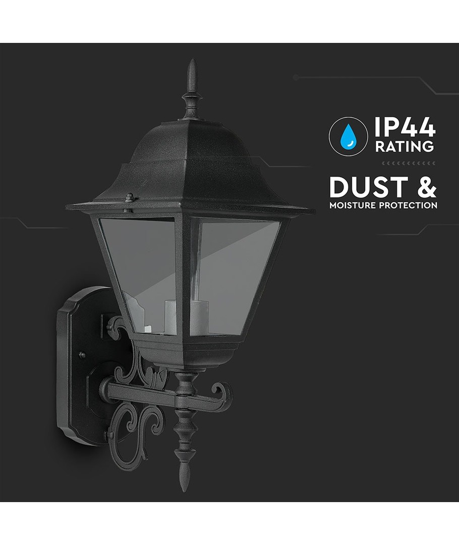 Matt Svart Finish: Den matta svarta ytan ger ett sofistikerat och tidlöst utseende som lätt smälter in i en mängd olika inredningsstilar.Denna vägglampa använder en E27 sockel, vilket gör det enkelt att välja mellan olika typer av ljuskällor för att skapa rätt atmosfär i rummet. Den är också en del av den högkvalitativa V-Tac Pro serien, känd för sina hållbara och effektiva belysningslösningar.