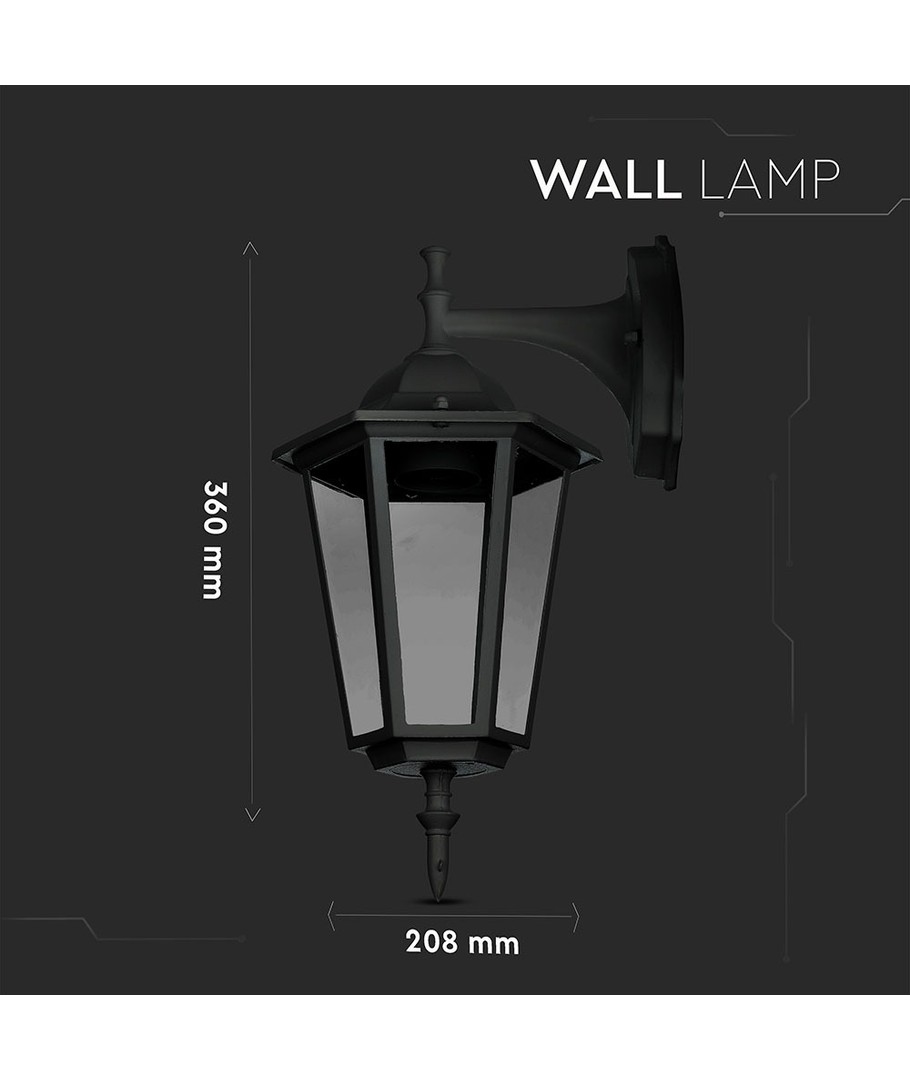 Denna vägglampa är utrustad med en E27-sockel, vilket innebär att den är kompatibel med en mängd olika ljuskällor och därmed erbjuder flexibilitet i ljusstyrka och ljusfärg beroende på dina behov.