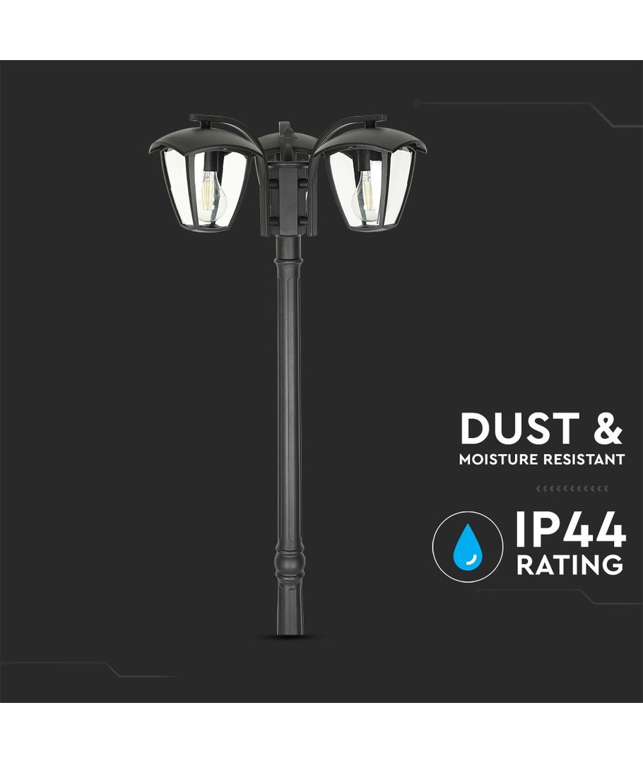 Den svarta finishen gör att denna lampa enkelt kan integreras i olika utomhusmiljöer, samtidigt som den erbjuder ett modernt och stilrent utseende.