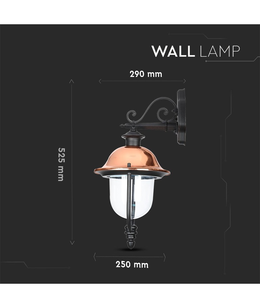 Denna vägglampa är försedd med ett klart täckglas och riktar ljuset nedåt för att skapa en behaglig och fokuserad atmosfär. Dess dimensioner på 525 x 250 x 290 mm gör den till ett imponerande tillskott utan att dominera utrymmet. IP44-klassificeringen säkerställer att lampan tål fuktig luft och vattenstänk, vilket gör den idealisk för både inomhus- och utomhusbruk.