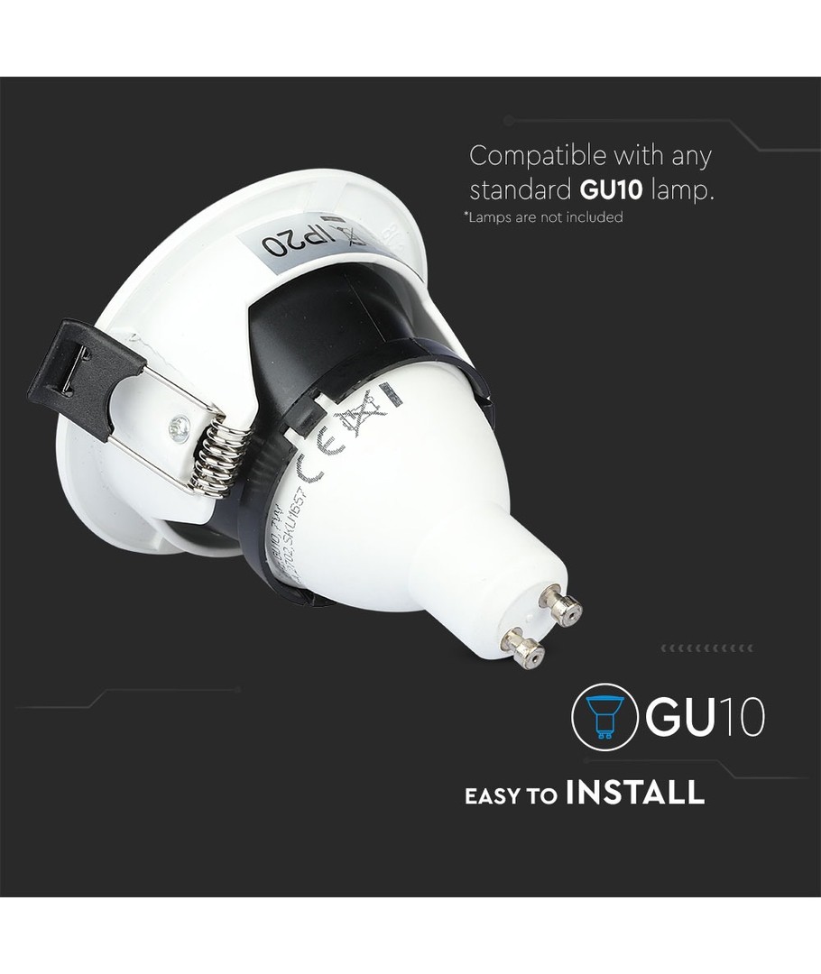 Denna lampfattning är utvecklad för att passa GU10 spotlights, vilket gör den till en utmärkt lösning för riktad belysning. Tack vare sina praktiska dimensioner på 83 x 40,7 mm, är installationen snabbt avklarad. Hålstorleken på 75 mm säkerställer enkel montering och ett elegant finish.