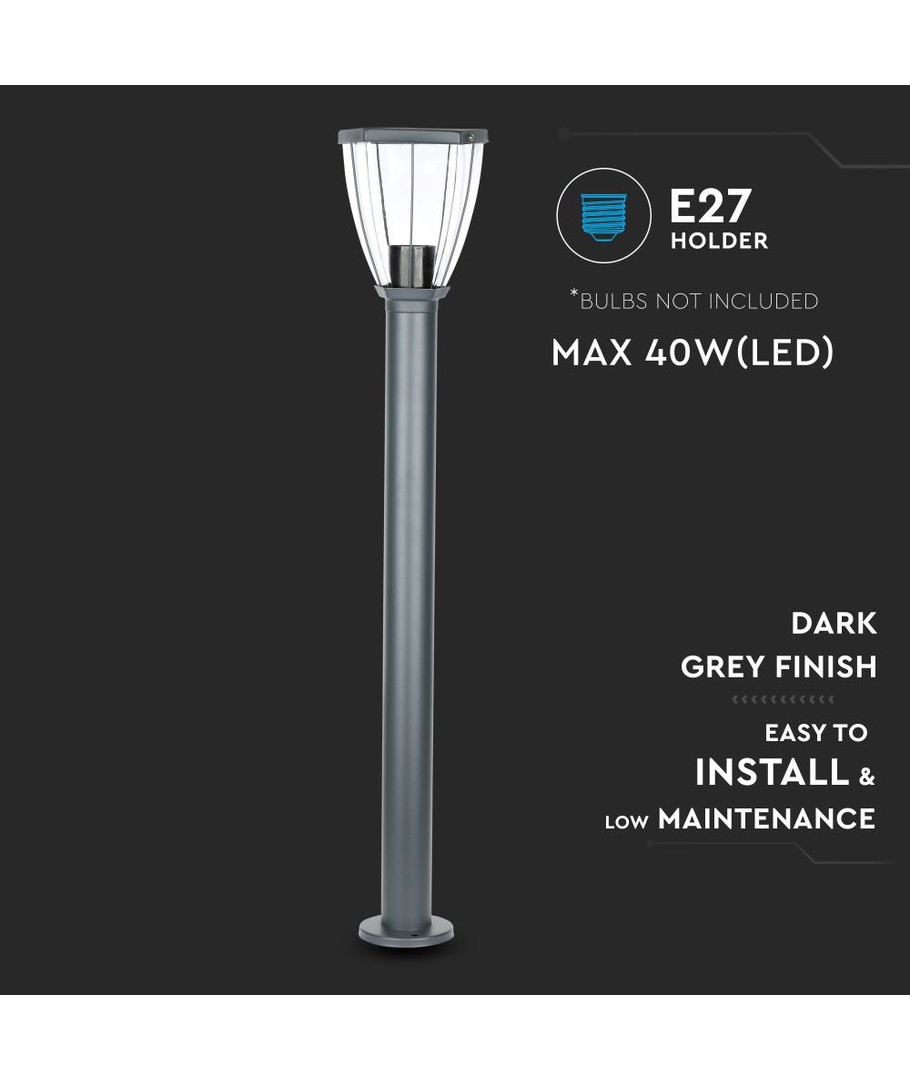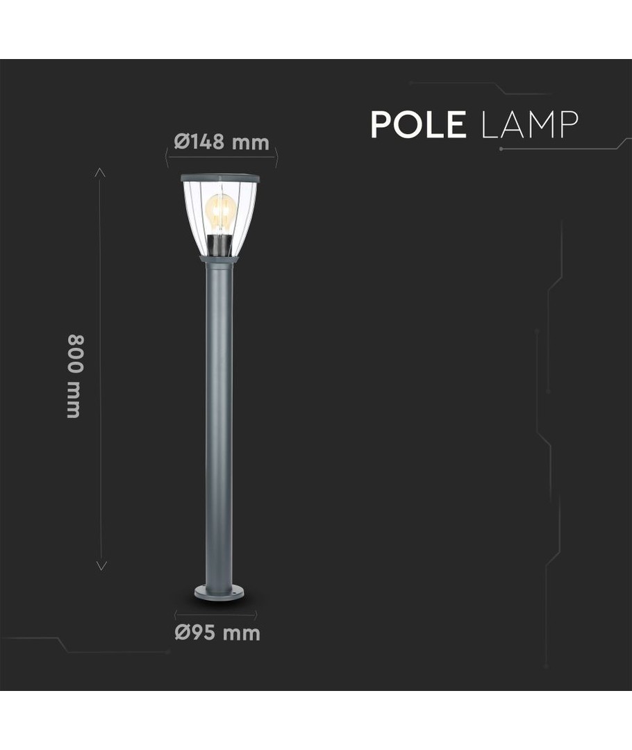 Upplev kraftfull och stilren belysning med denna eleganta pollarlampa från V-Tac Pro serien. Med ett tidlöst svart utförande och klart lock är denna lampa ett perfekt tillskott för att lysa upp din utomhusmiljö.