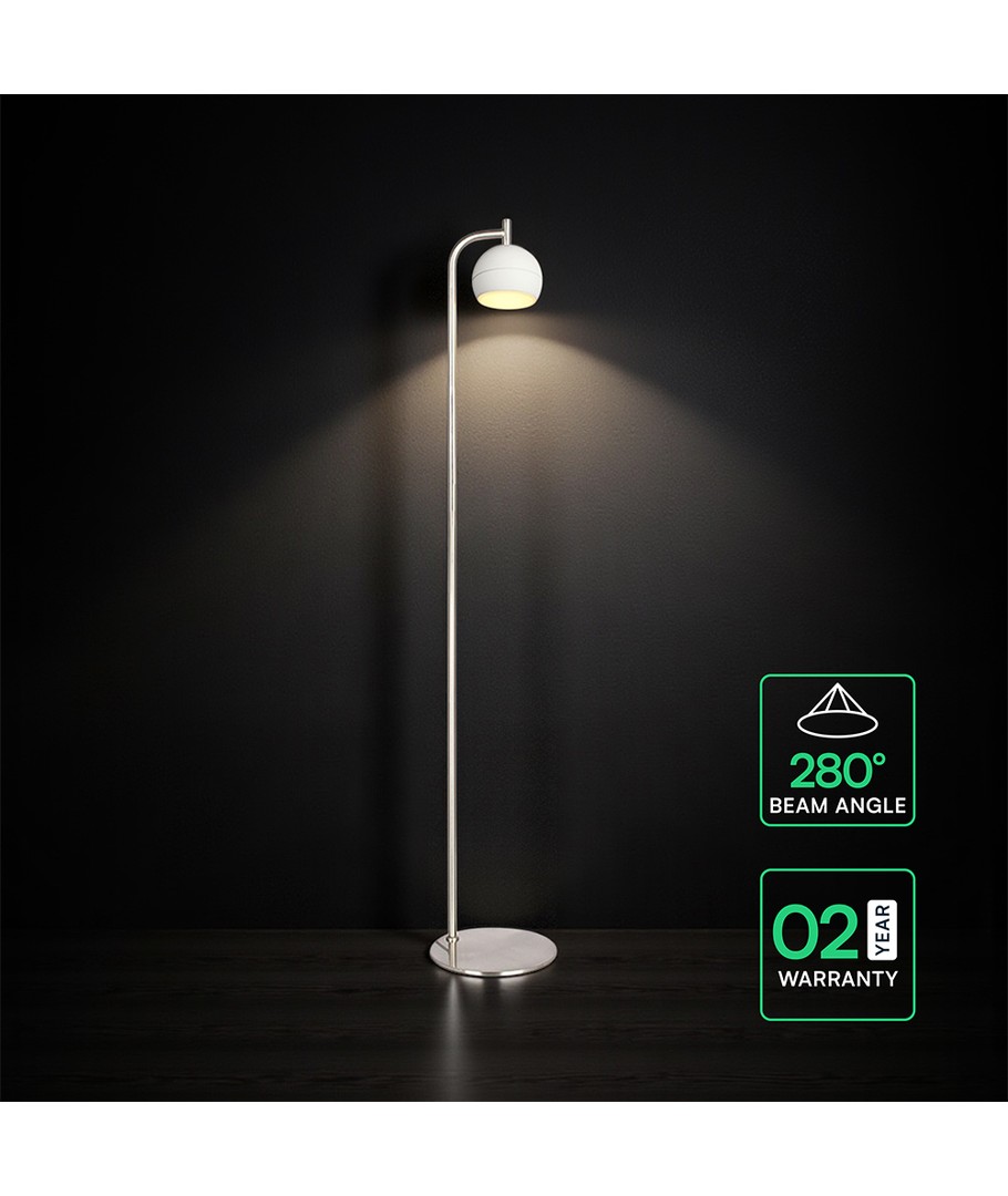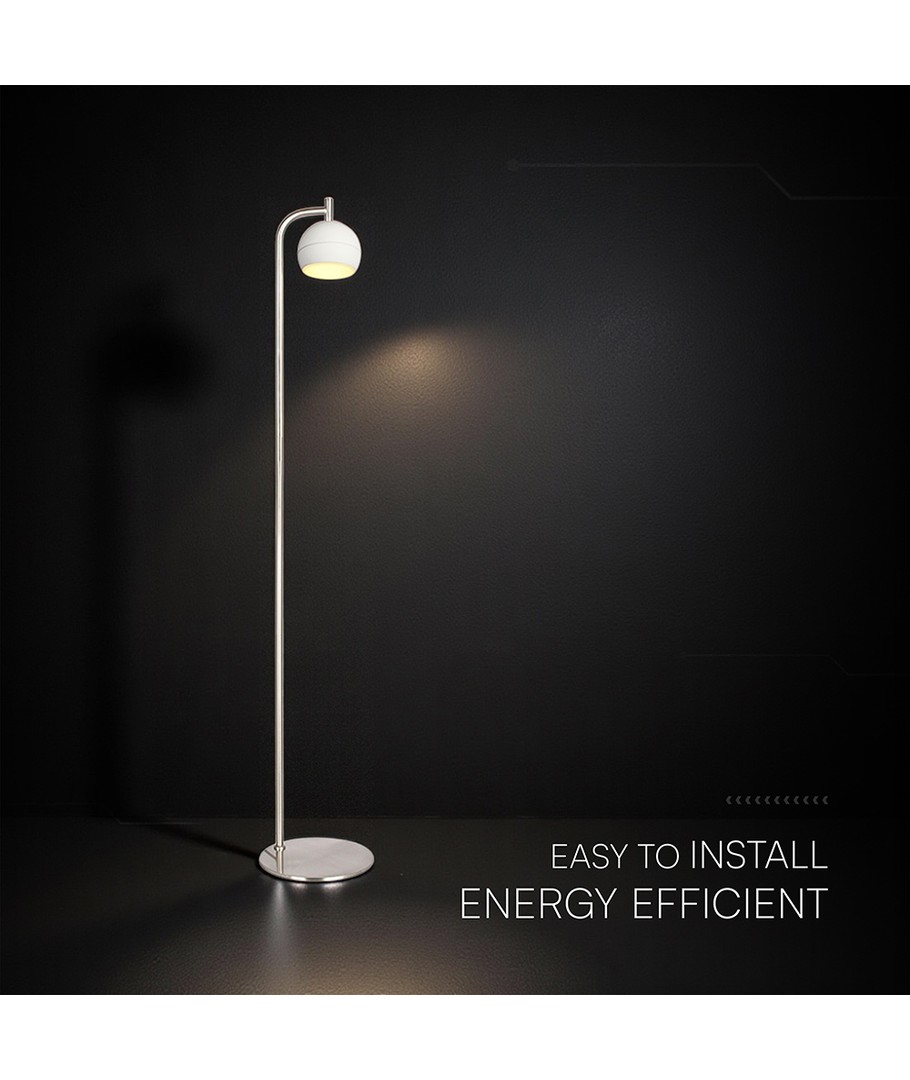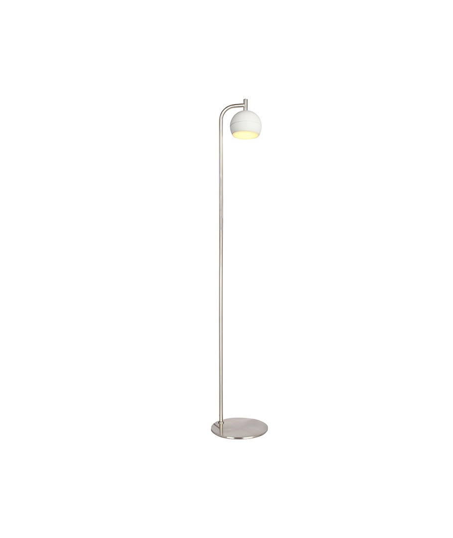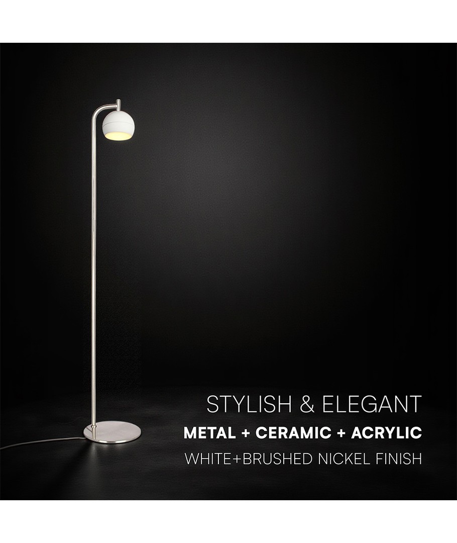 Denna dekorativa golvlampa ger ditt hem ett stilfullt tillskott med sin borstad nickel och vita finish. Den är skapad för att ge högkvalitativ belysning och samtidigt fungera som en vacker inredningsdetalj.