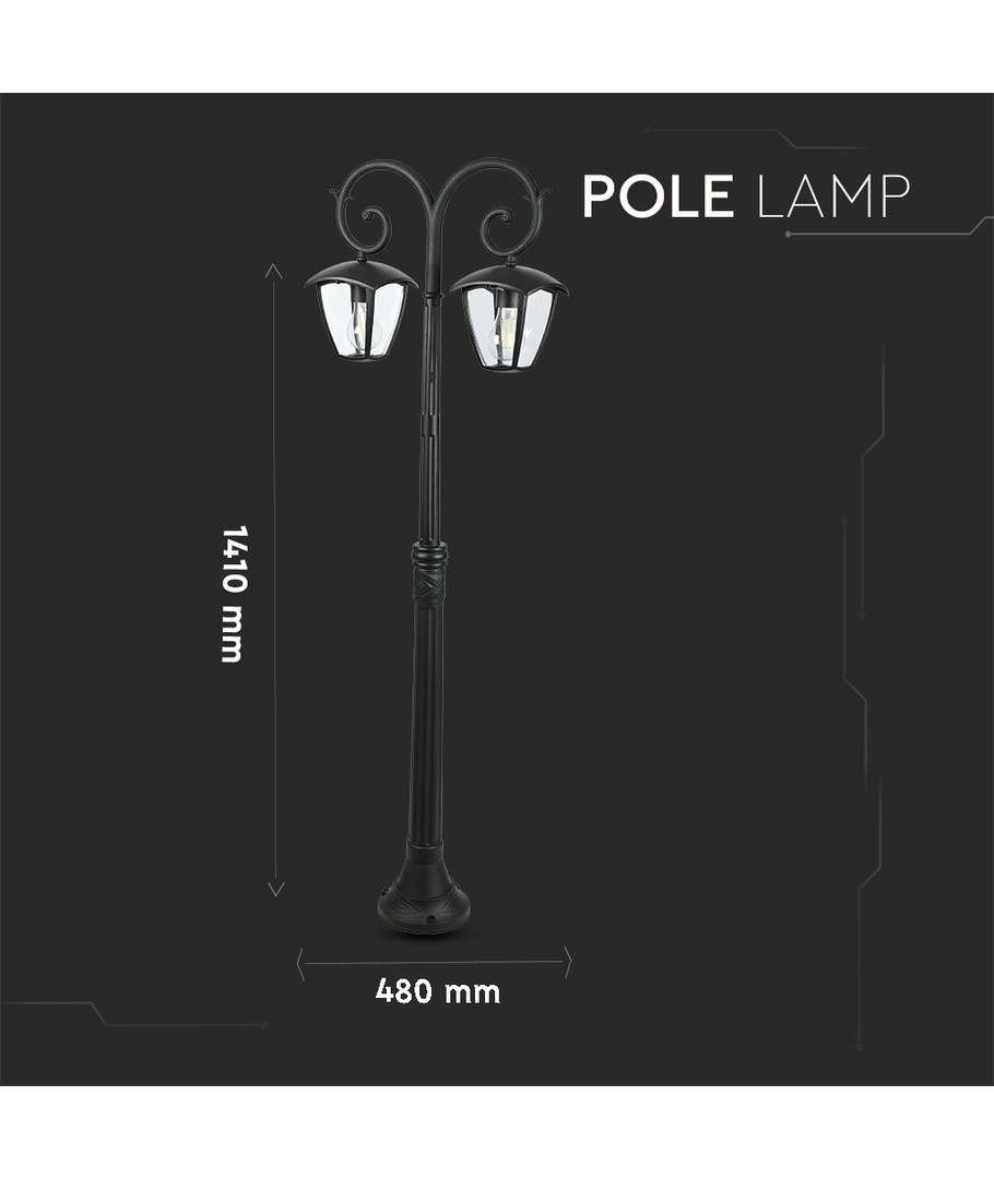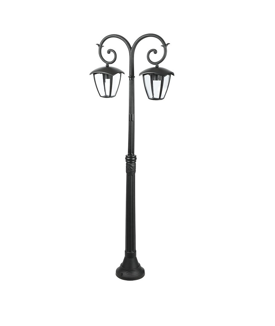 Denna lampstolpe erbjuder inte bara stil utan också exceptionell funktionalitet. Dessutom har den en konstruktion med två huvuden, vilket bidrar till ett sofistikerat utseende samtidigt som den maximerar ljuskällans effektivitet.