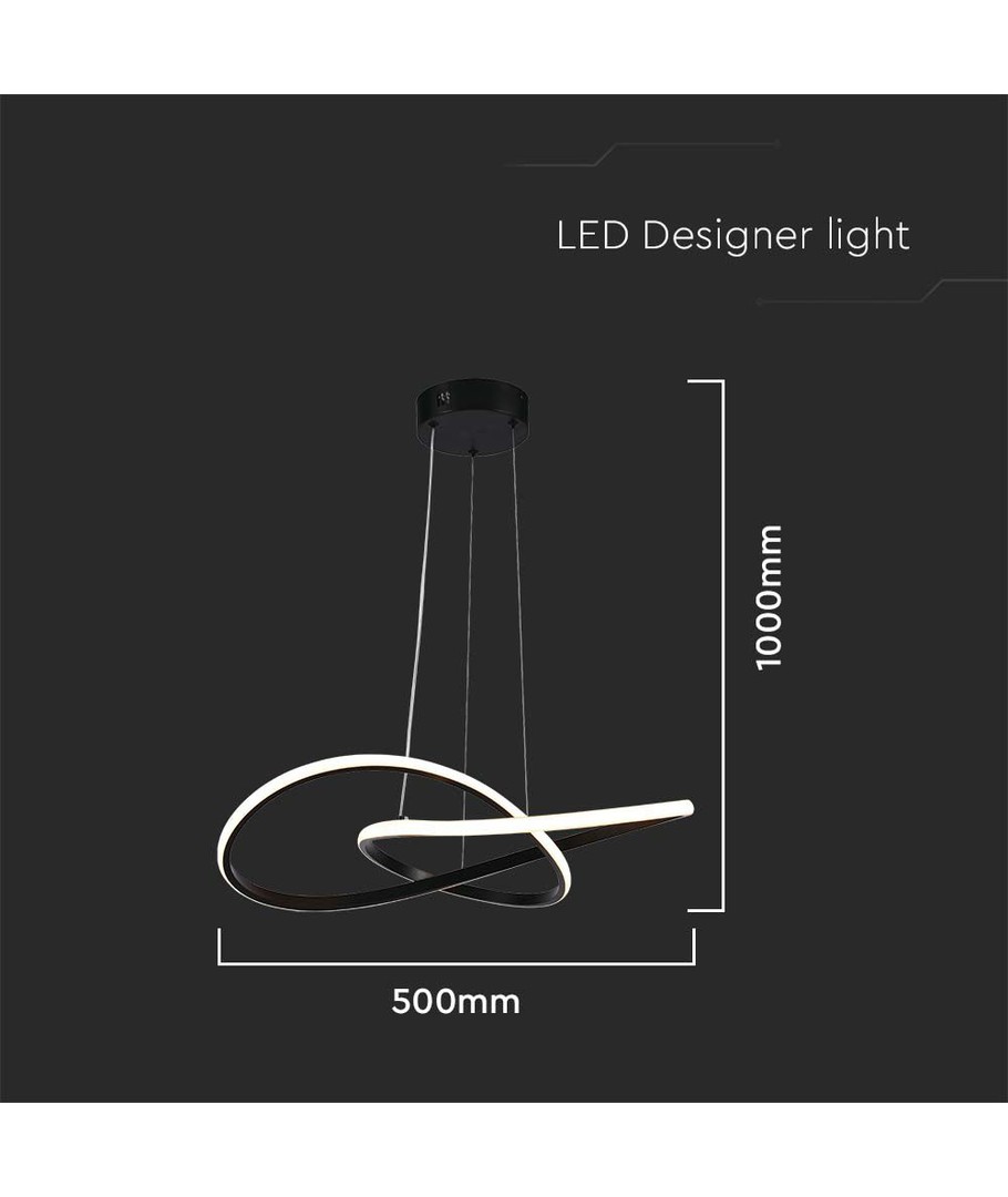 20W Ø50cm cirkulär LED pendel - 130lm/W, svart, 3000K, modern design V-TAC Expandera