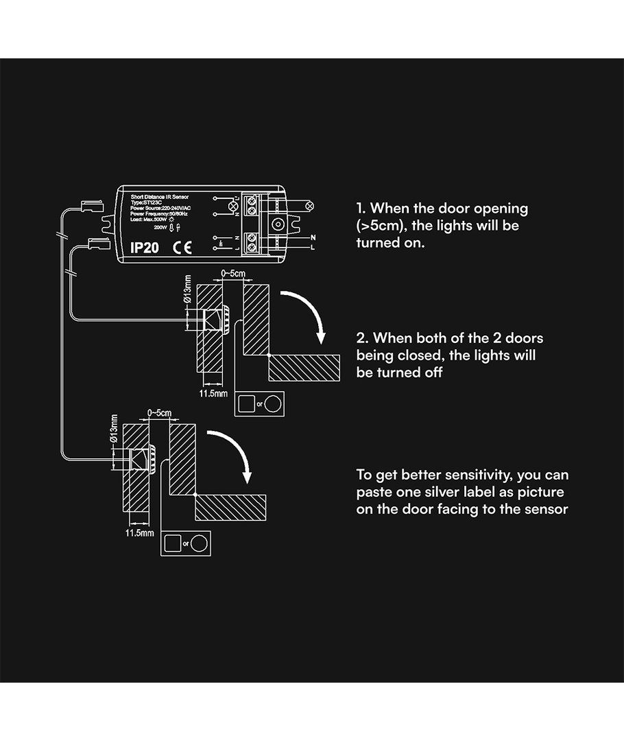 | Yderligere bemærkninger | Sensor type: Infrared. Sensor distance: 5-6cm. |